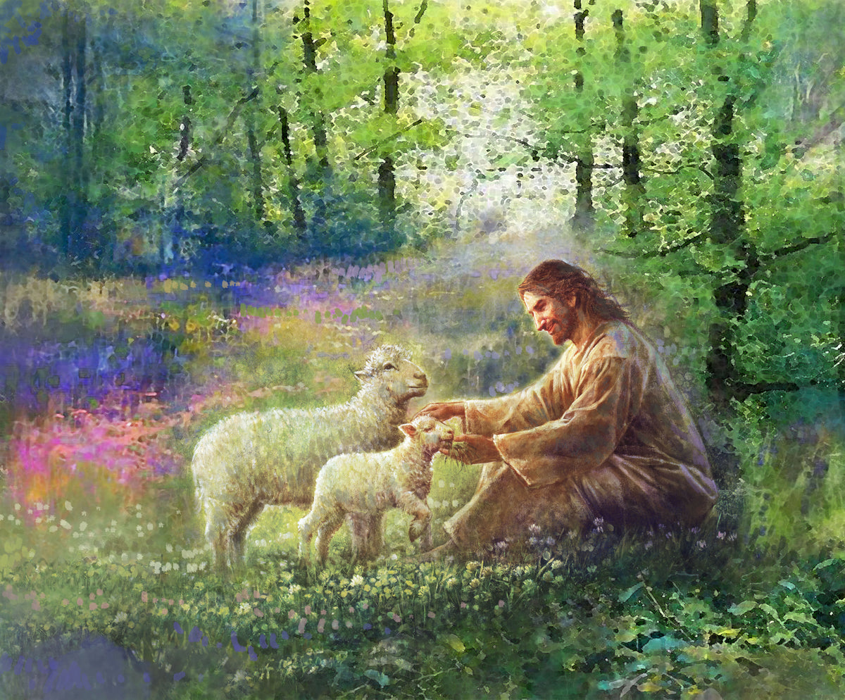 In this painting Jesus is depicted with gentle tenderness, surrounded by two sheep in a tranquil forest. His outstretched arms, warm and inviting, beckon the little ones to come close, embodying His deep love and care for His flock. The soft glow of light surrounding Him contrasts with the calm, natural beauty of the forest, emphasizing the divine presence amidst the serenity of the scene. Bring Me The Little Ones captures a moment of divine compassion, offering a peaceful reminder of Jesus' call to His followers, guiding them with patience and love toward His eternal care and protection.