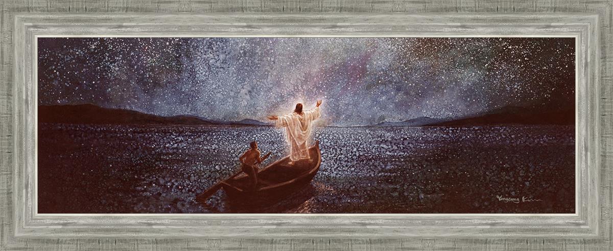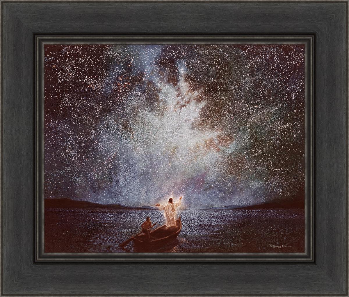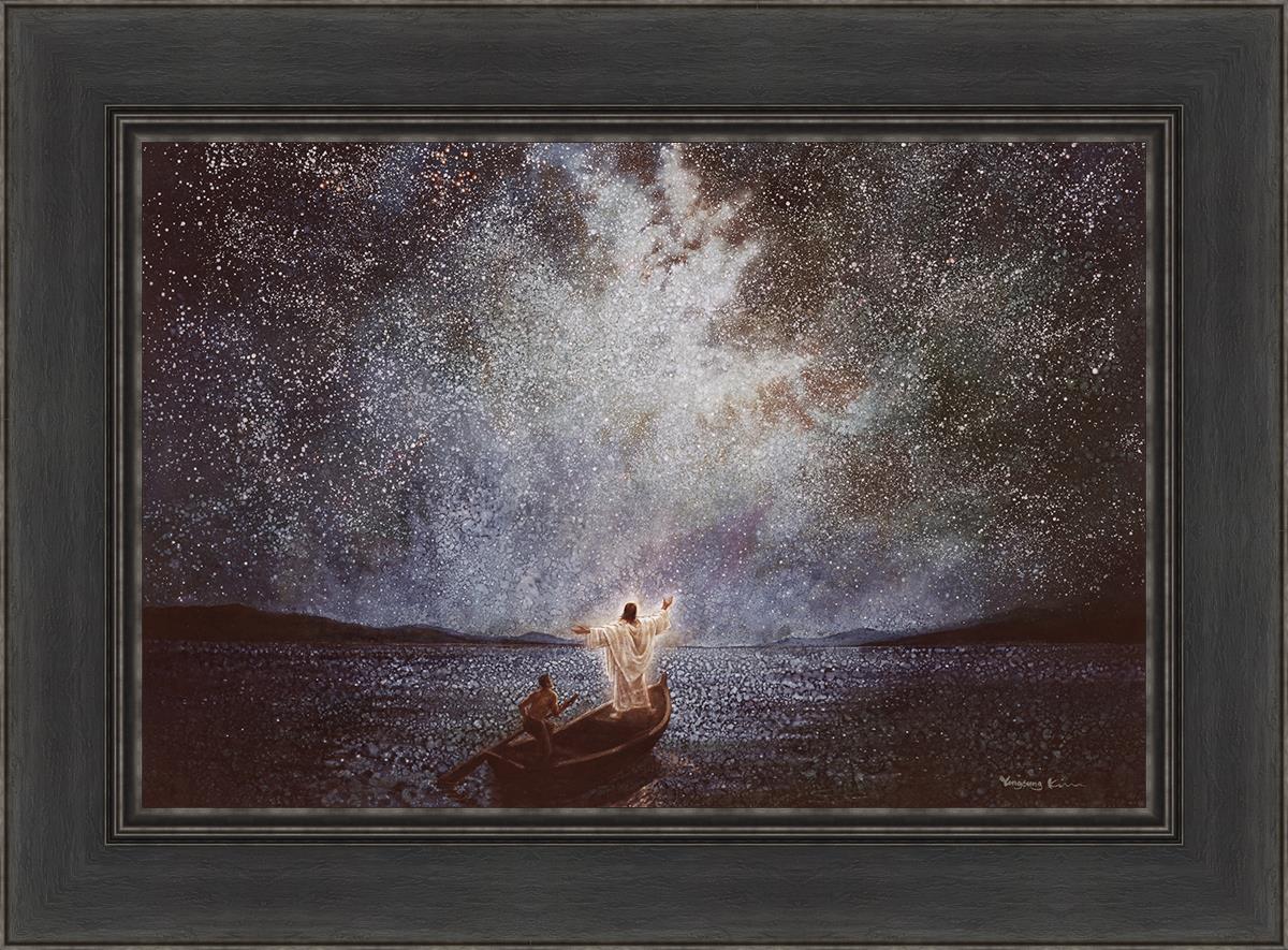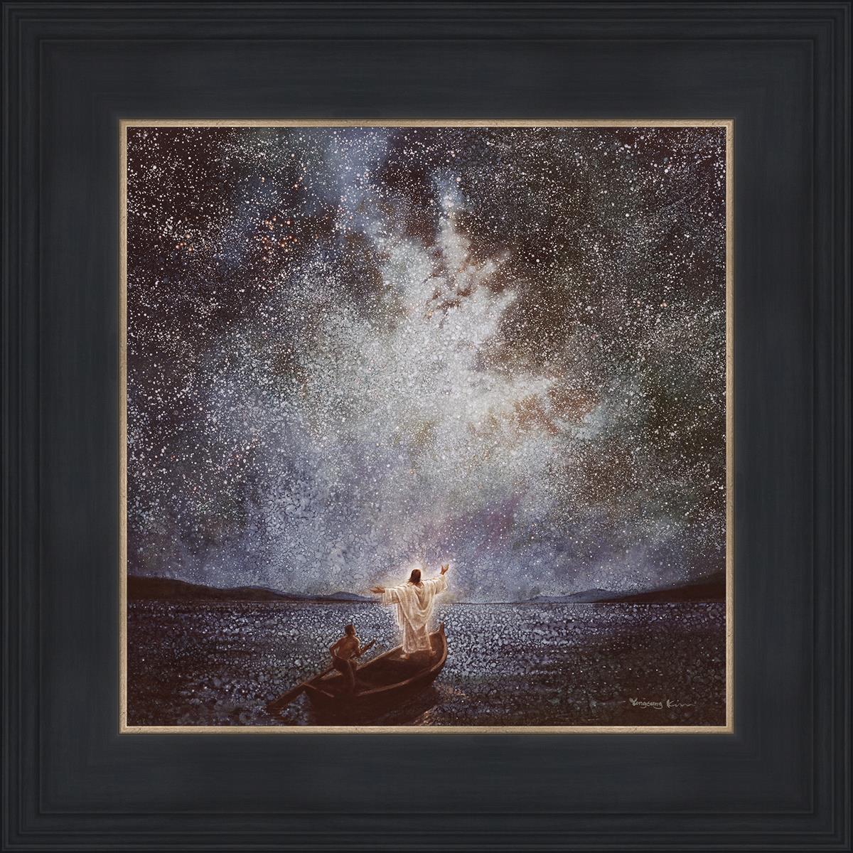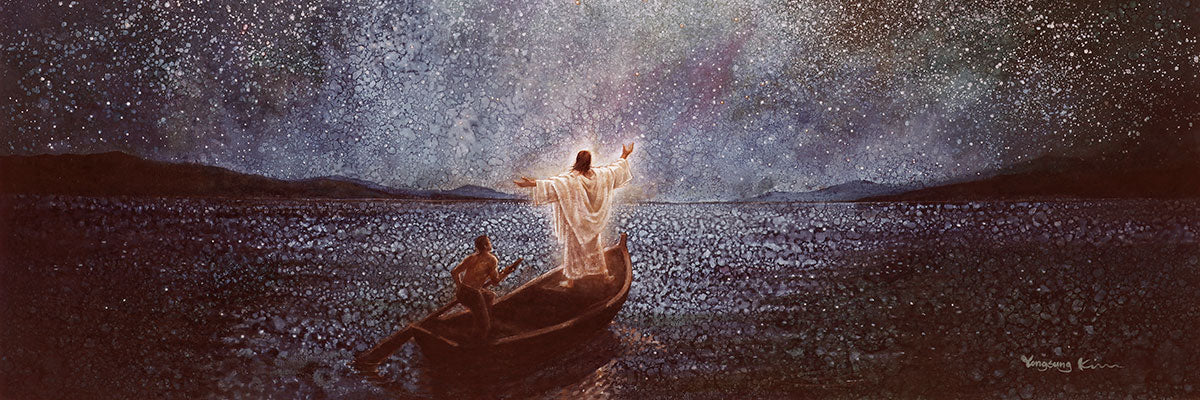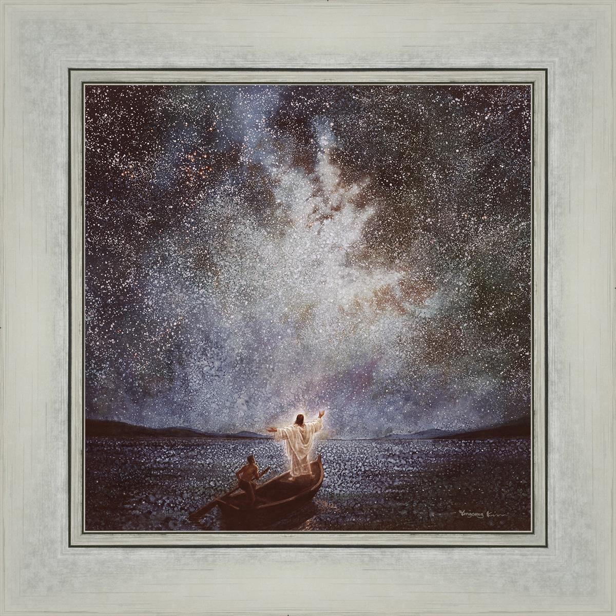 As Yongsung Kim envisioned the Calm and Stars painting, he pondered the power and grandeur of God. The Calm and Stars painting depicts Jesus calming the seas during a great storm, noticing stars and galaxies after the calm. How amazing it would have been to be one of the disciples on the boat when Christ calmed the raging seas!