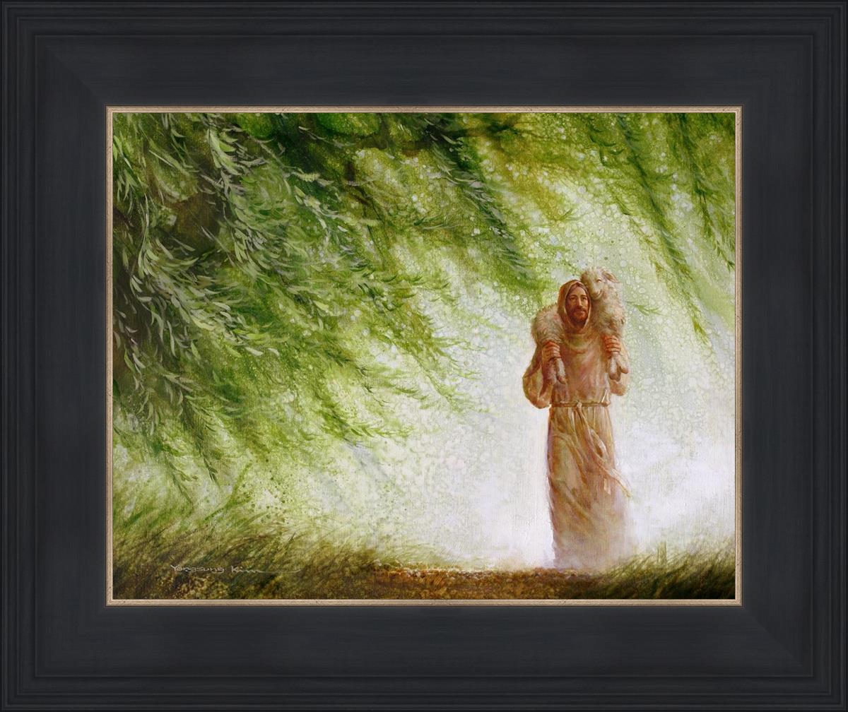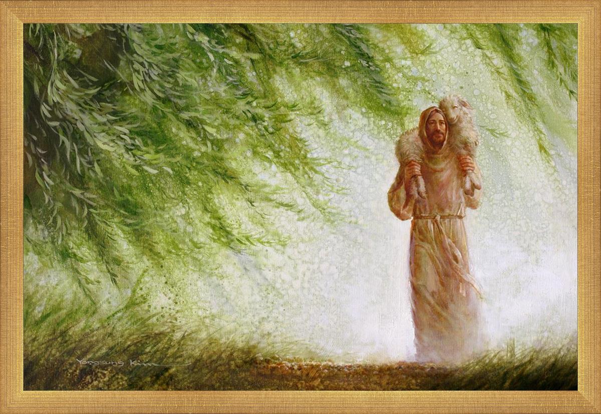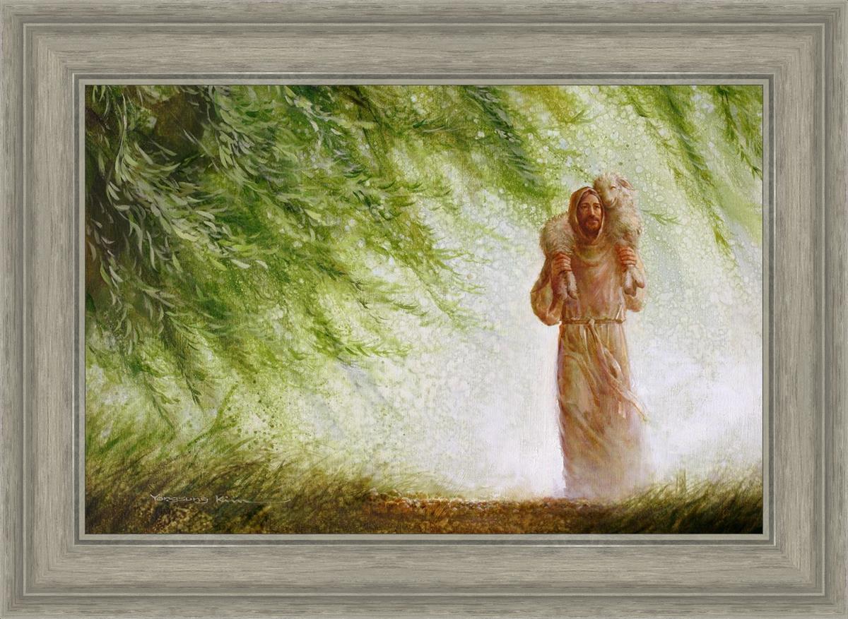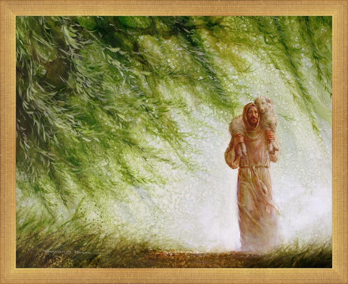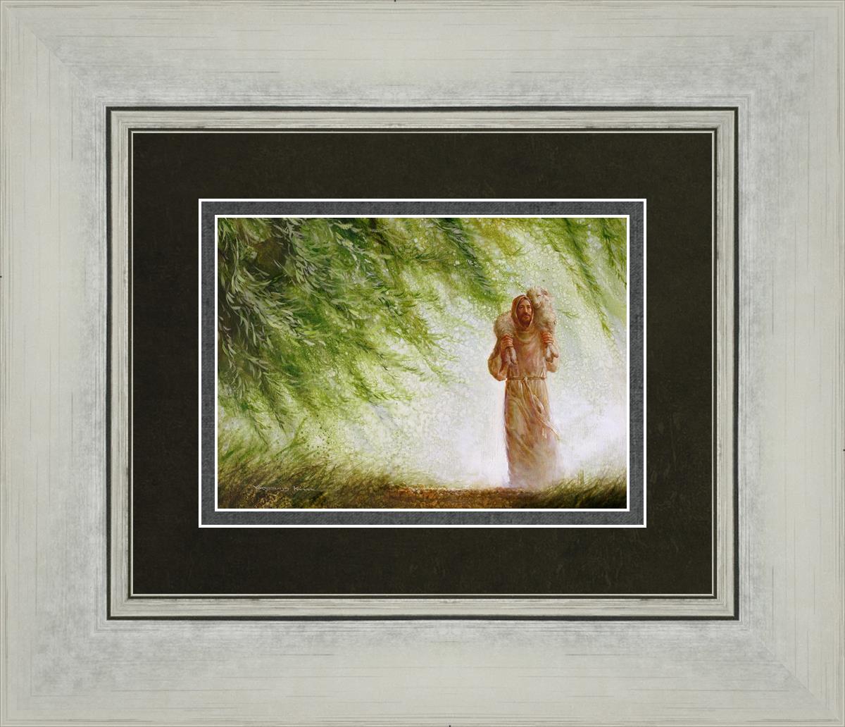 This painting powerfully captures a moment of protection and care, as Jesus Christ carries a lamb on His shoulders. The lamb represents the lost, the weary, and the broken, finding refuge in His embrace. Christ carrying the lamb on His shoulders serves as a visual metaphor for divine love and the promise that no one is ever too lost to be found. Carry On invites the viewer to reflect on the Savior's enduring presence and His loving support in times of difficulty, offering a message of hope, strength, and grace.
