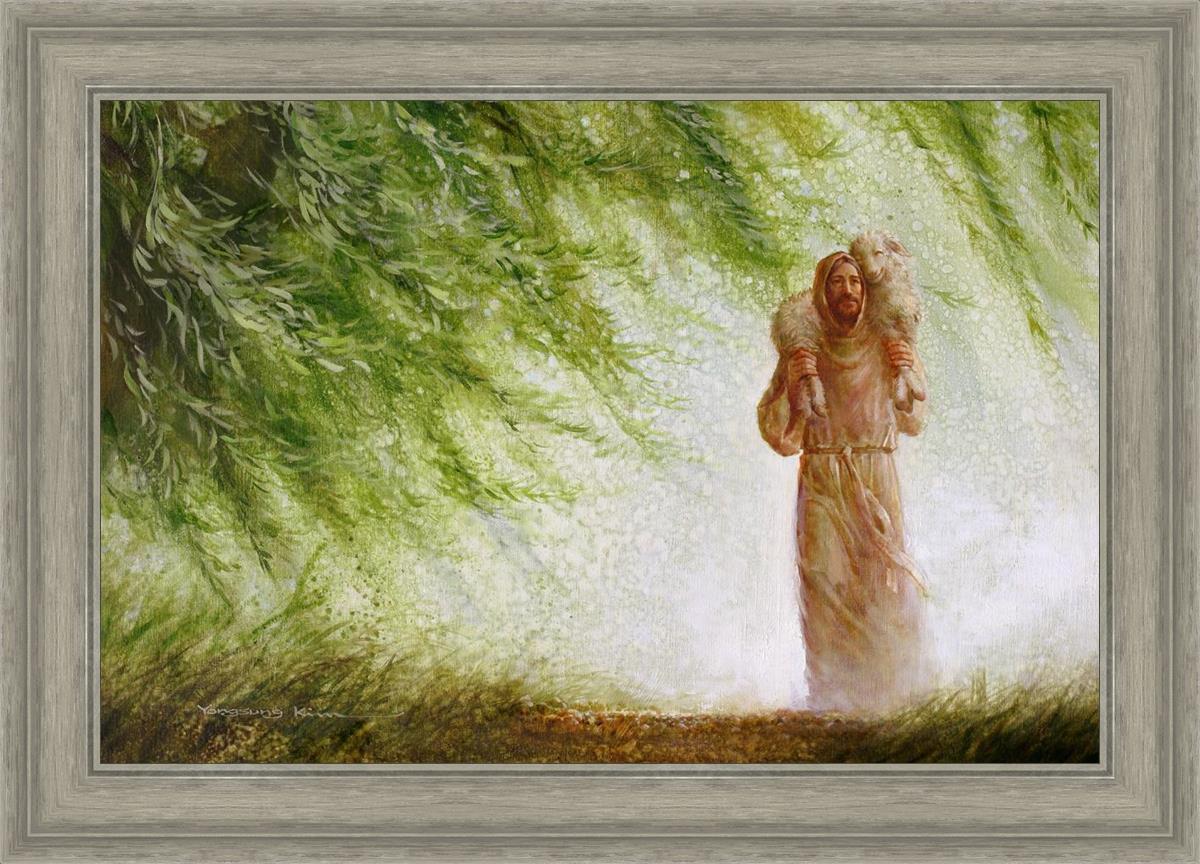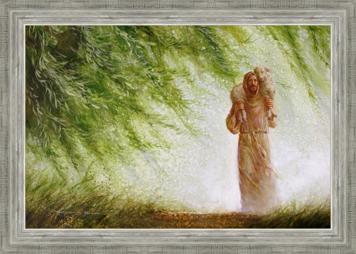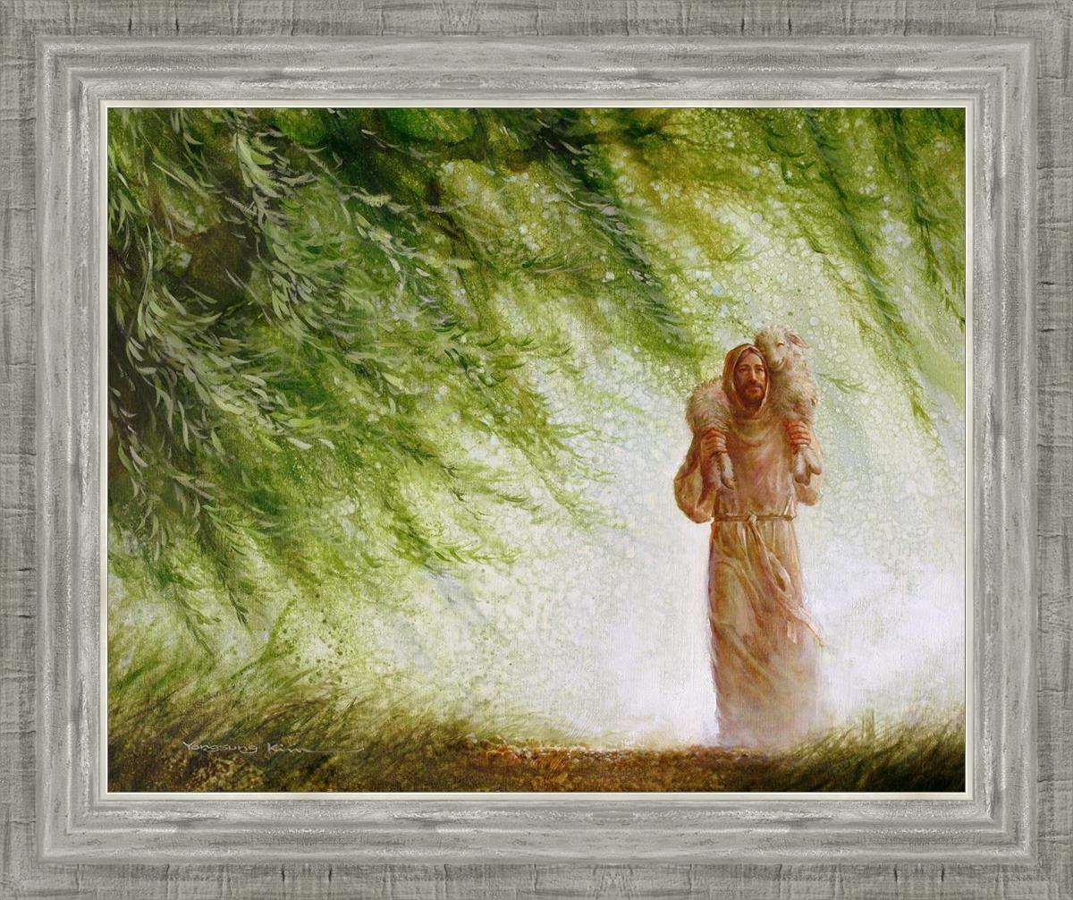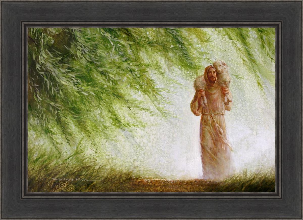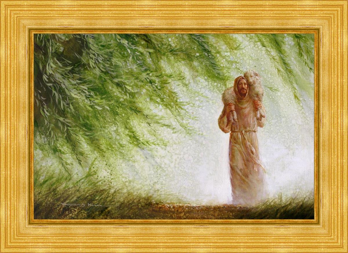 This painting powerfully captures a moment of protection and care, as Jesus Christ carries a lamb on His shoulders. The lamb represents the lost, the weary, and the broken, finding refuge in His embrace. Christ carrying the lamb on His shoulders serves as a visual metaphor for divine love and the promise that no one is ever too lost to be found. Carry On invites the viewer to reflect on the Savior's enduring presence and His loving support in times of difficulty, offering a message of hope, strength, and grace.