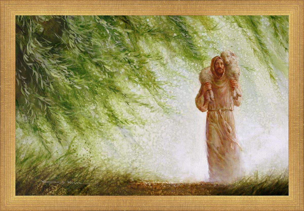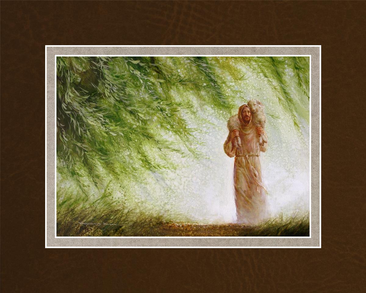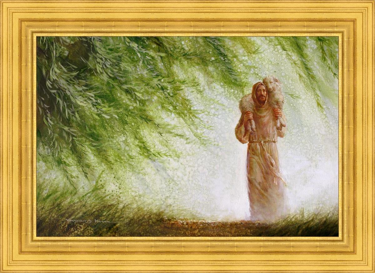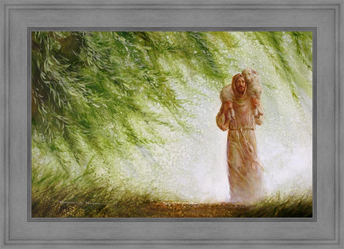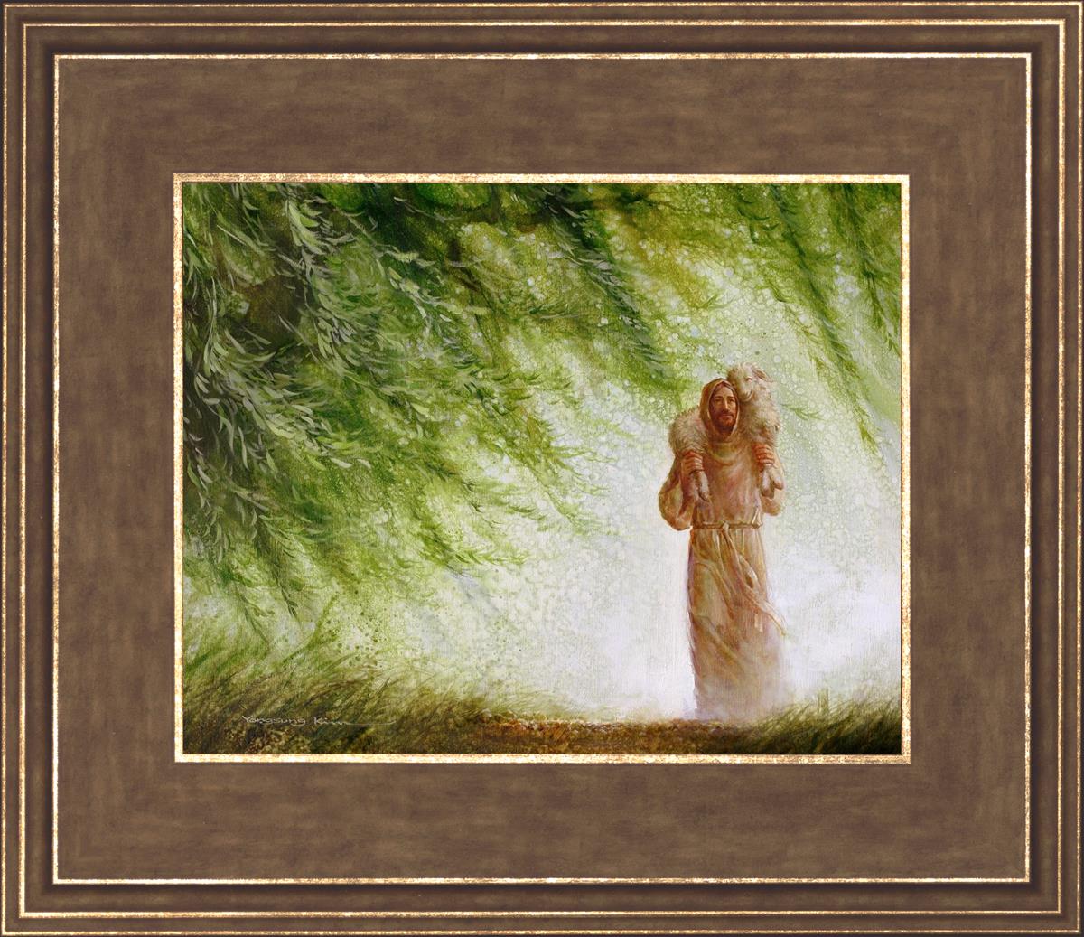 This painting powerfully captures a moment of protection and care, as Jesus Christ carries a lamb on His shoulders. The lamb represents the lost, the weary, and the broken, finding refuge in His embrace. Christ carrying the lamb on His shoulders serves as a visual metaphor for divine love and the promise that no one is ever too lost to be found. Carry On invites the viewer to reflect on the Savior's enduring presence and His loving support in times of difficulty, offering a message of hope, strength, and grace.