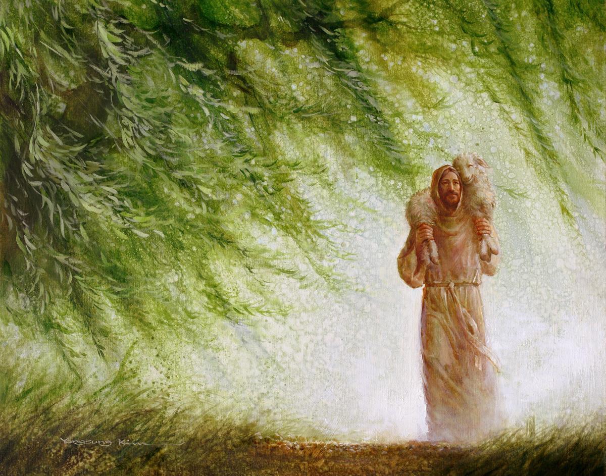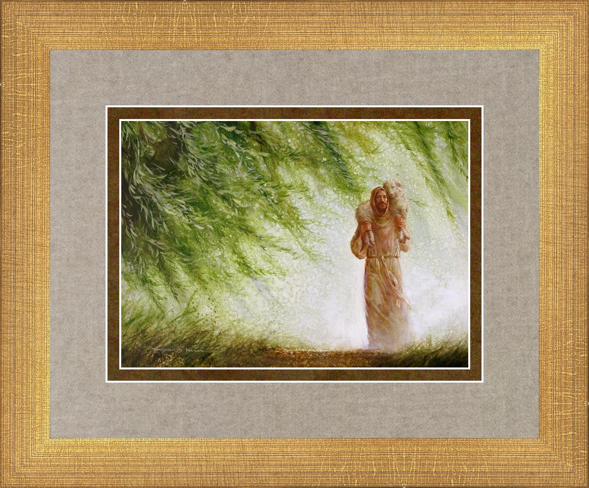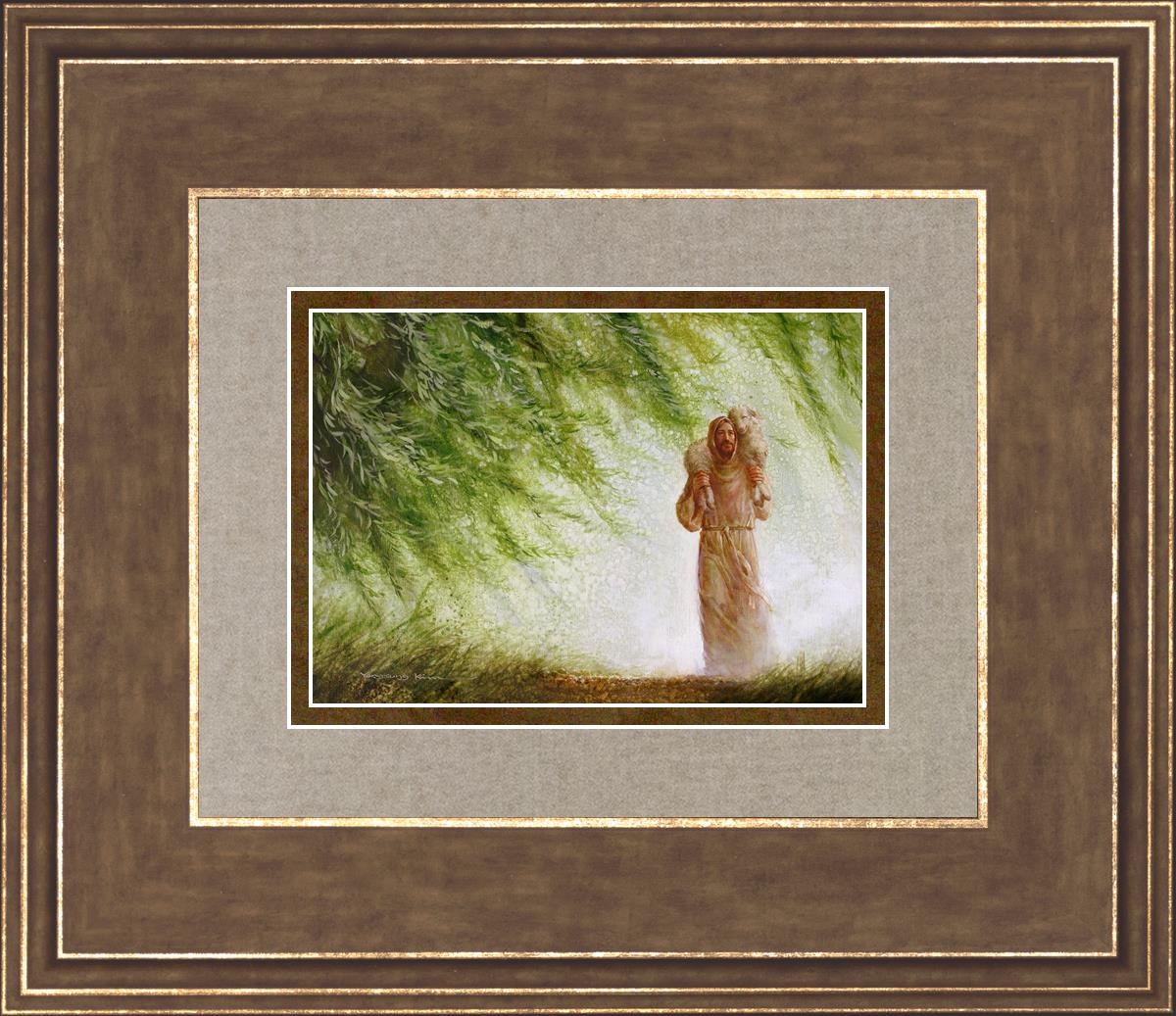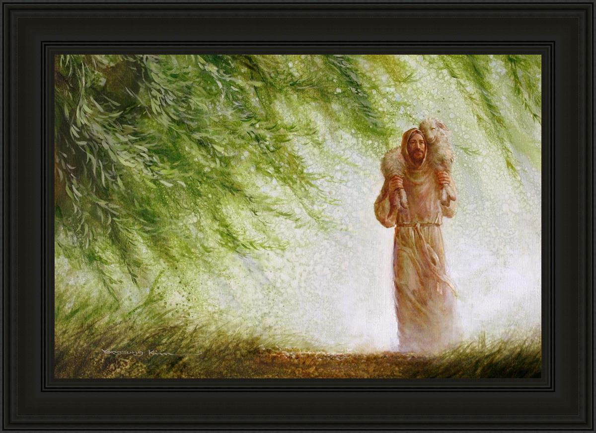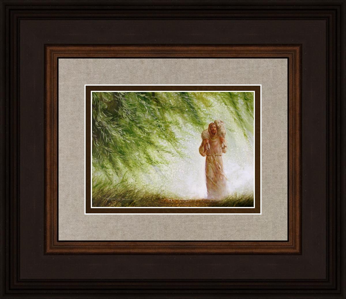 This painting powerfully captures a moment of protection and care, as Jesus Christ carries a lamb on His shoulders. The lamb represents the lost, the weary, and the broken, finding refuge in His embrace. Christ carrying the lamb on His shoulders serves as a visual metaphor for divine love and the promise that no one is ever too lost to be found. Carry On invites the viewer to reflect on the Savior's enduring presence and His loving support in times of difficulty, offering a message of hope, strength, and grace.