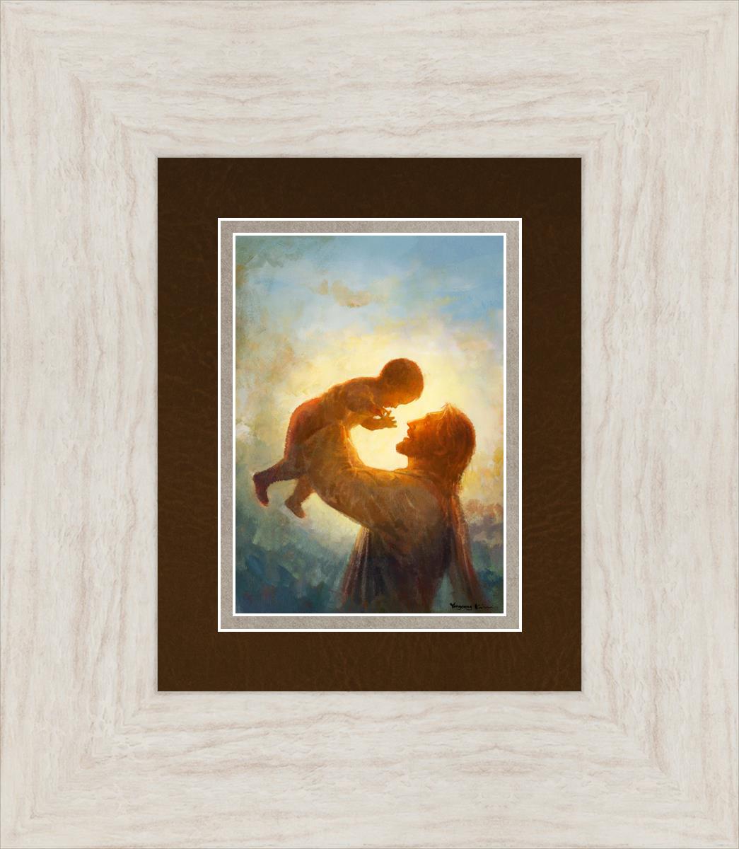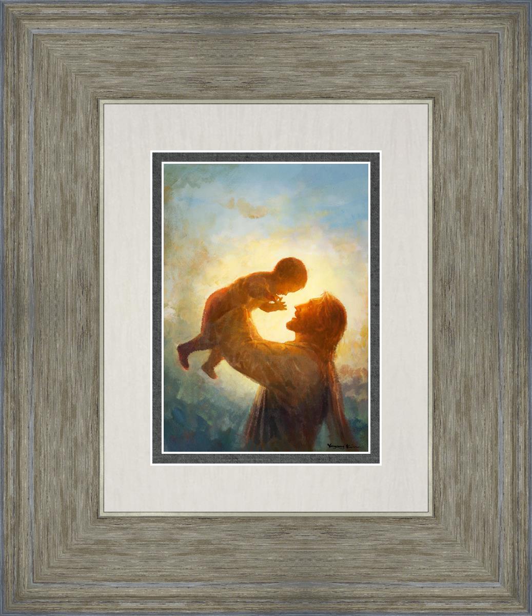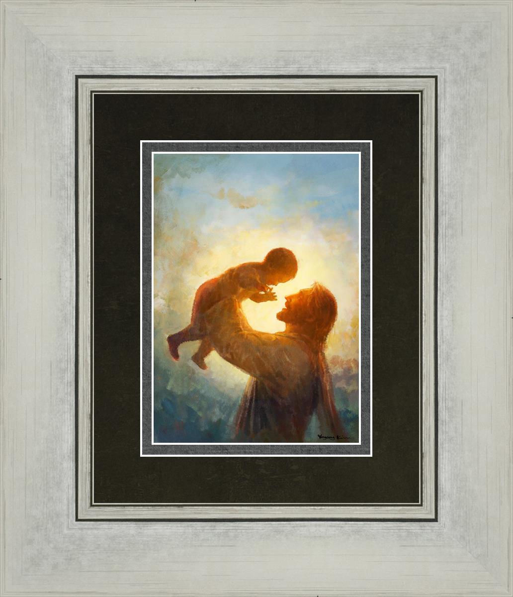 This painting depicts Jesus Christ lifting a child high above His head, bathed in the warm glow of sunlight streaming from behind. The child’s joyful expression and the radiant light symbolize the purity and innocence of faith. The connection between Jesus and the child exudes warmth, protection, and the promise of eternal care. Heaven's Gift invites viewers to find joy and comfort in the presence of His grace, recognizing that, like the child, they are always held in God's loving arms.