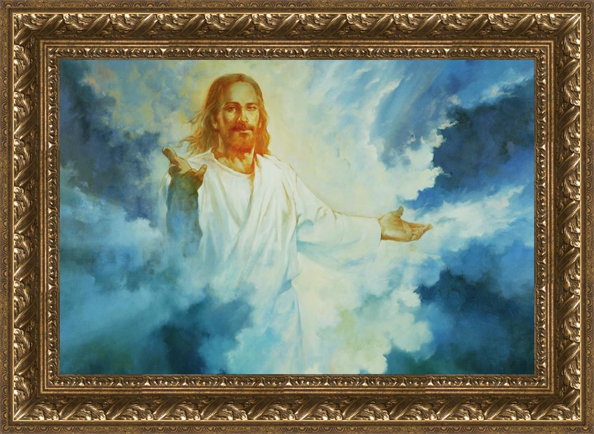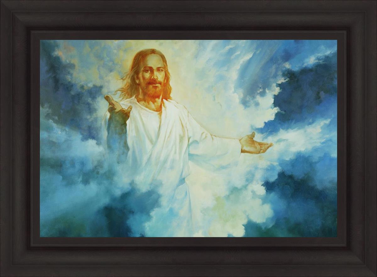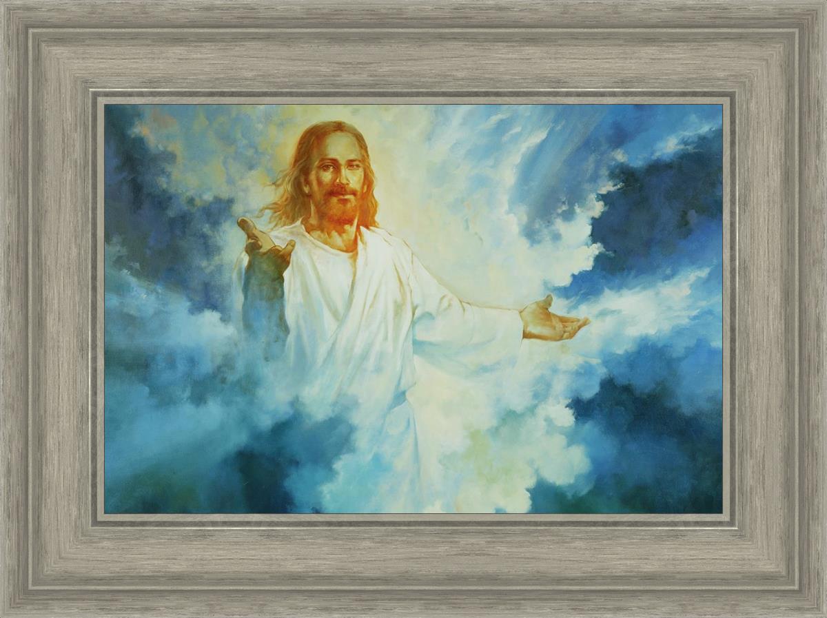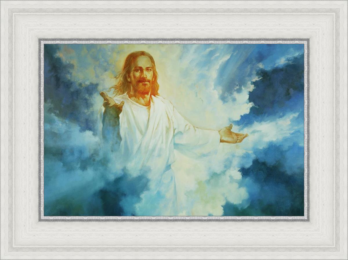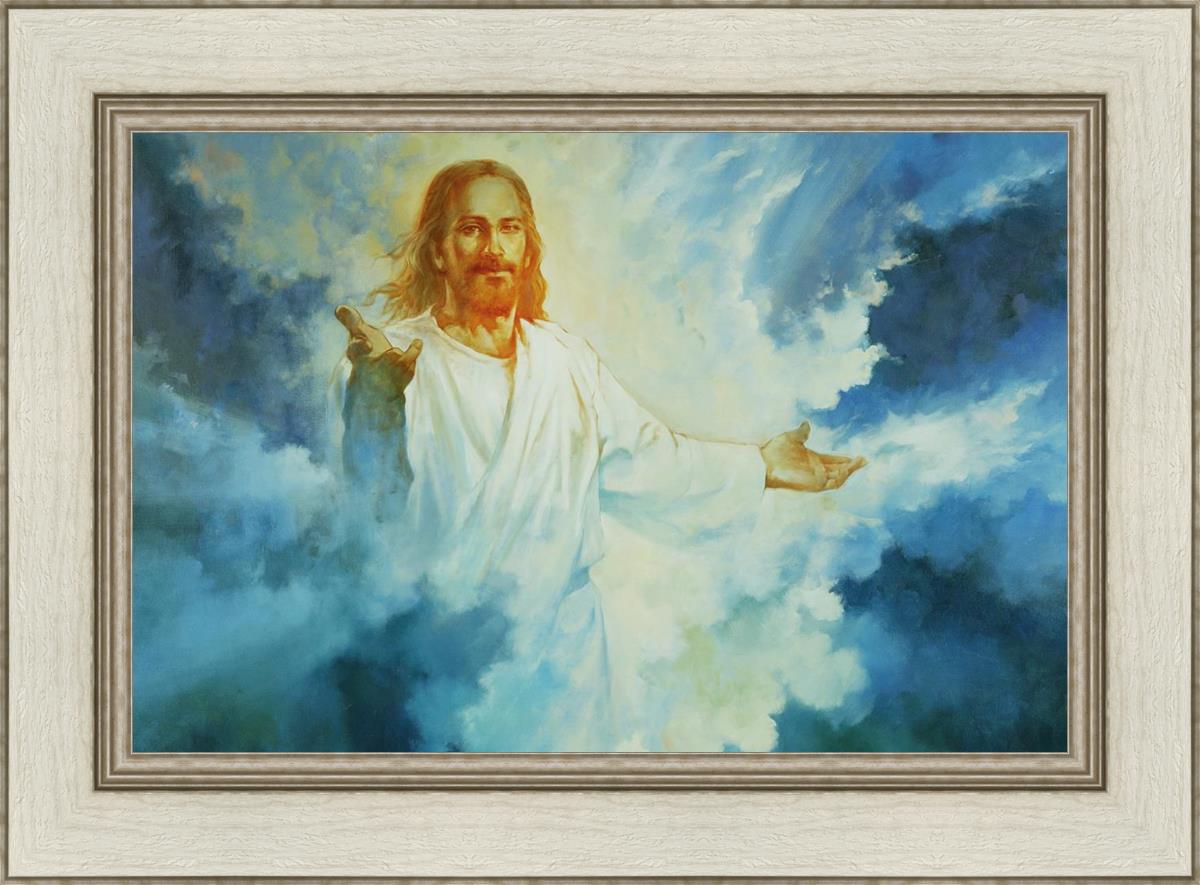 This painting depicts Jesus Christ in the clouds with outstretched arms. One hand reaches down toward us, a gesture of love and compassion, while the other beckons us to join Him in the eternal peace of heaven. Heavenly Welcome serves as a reminder of Jesus' invitation to all, encouraging viewers to reflect on their trust in Him. It offers a sense of comfort and reassurance, reminding us that His love is always available, waiting for us to accept His call.