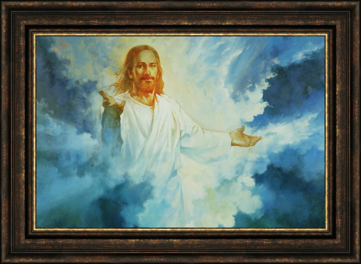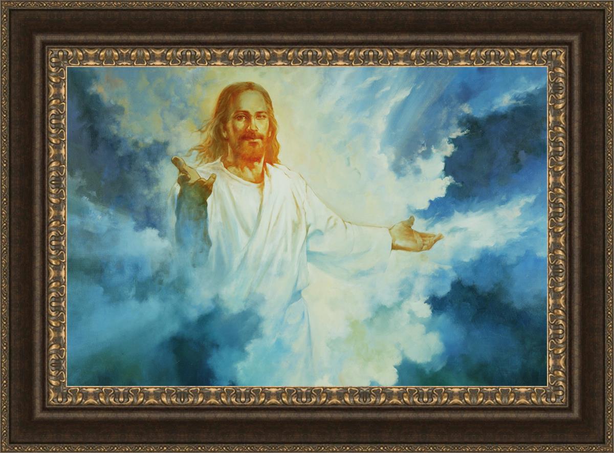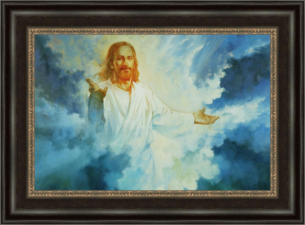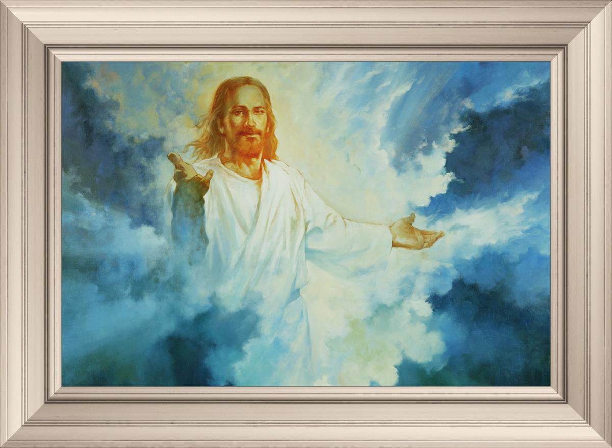 This painting depicts Jesus Christ in the clouds with outstretched arms. One hand reaches down toward us, a gesture of love and compassion, while the other beckons us to join Him in the eternal peace of heaven. Heavenly Welcome serves as a reminder of Jesus' invitation to all, encouraging viewers to reflect on their trust in Him. It offers a sense of comfort and reassurance, reminding us that His love is always available, waiting for us to accept His call.
