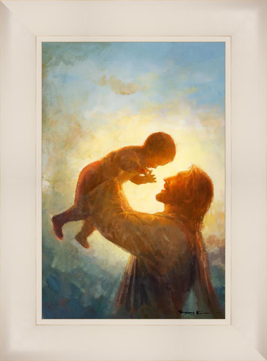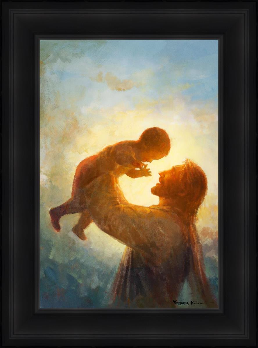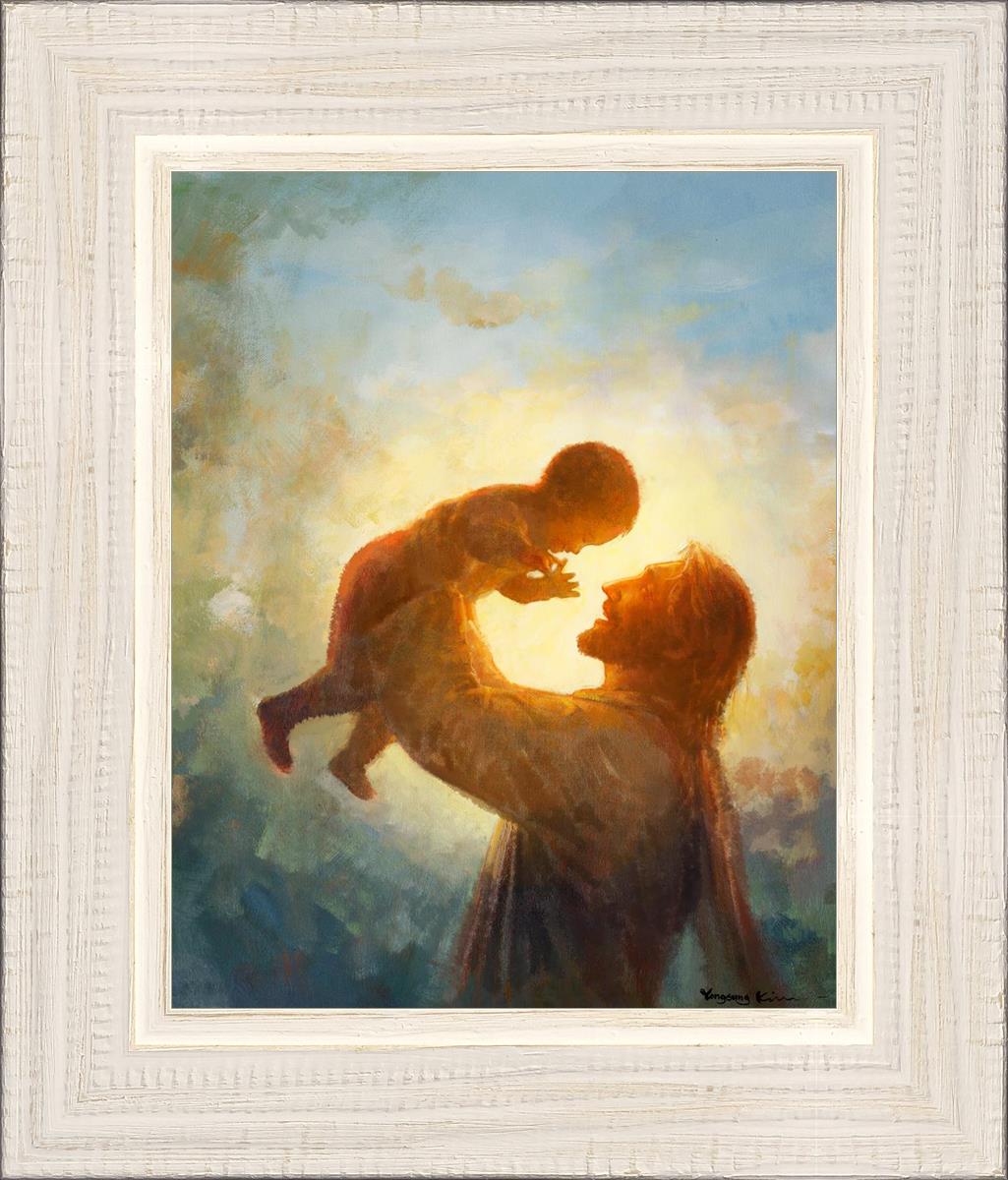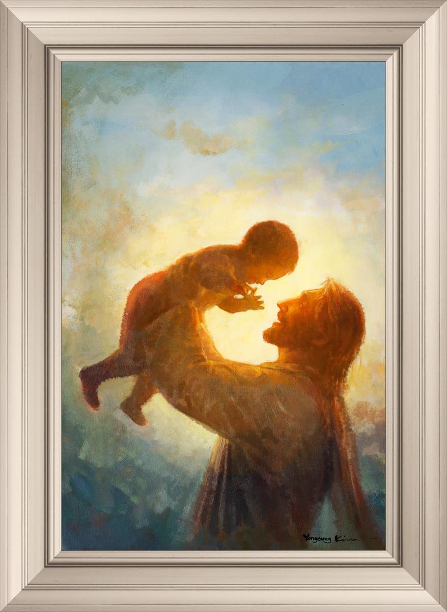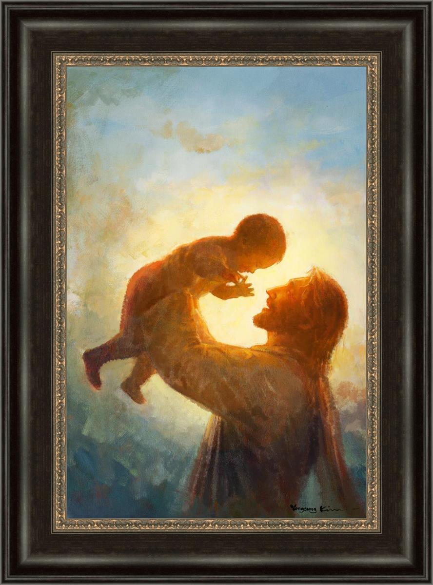This painting depicts Jesus Christ lifting a child high above His head, bathed in the warm glow of sunlight streaming from behind. The child’s joyful expression and the radiant light symbolize the purity and innocence of faith. The connection between Jesus and the child exudes warmth, protection, and the promise of eternal care. Heaven's Gift invites viewers to find joy and comfort in the presence of His grace, recognizing that, like the child, they are always held in God's loving arms.