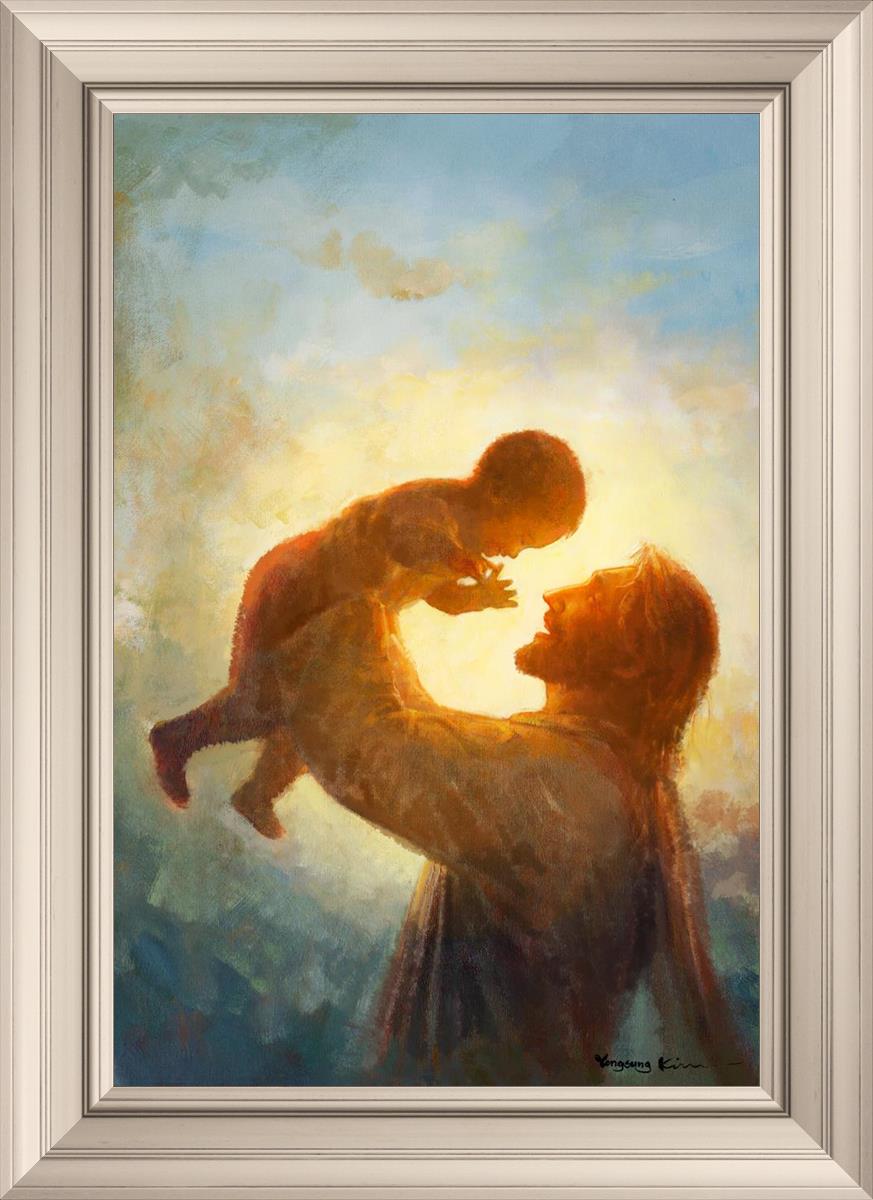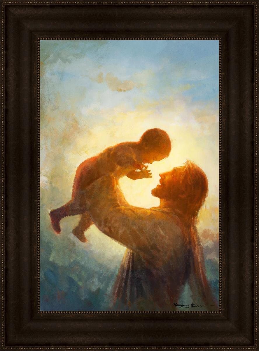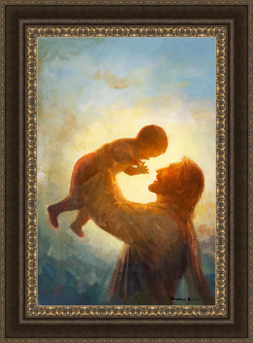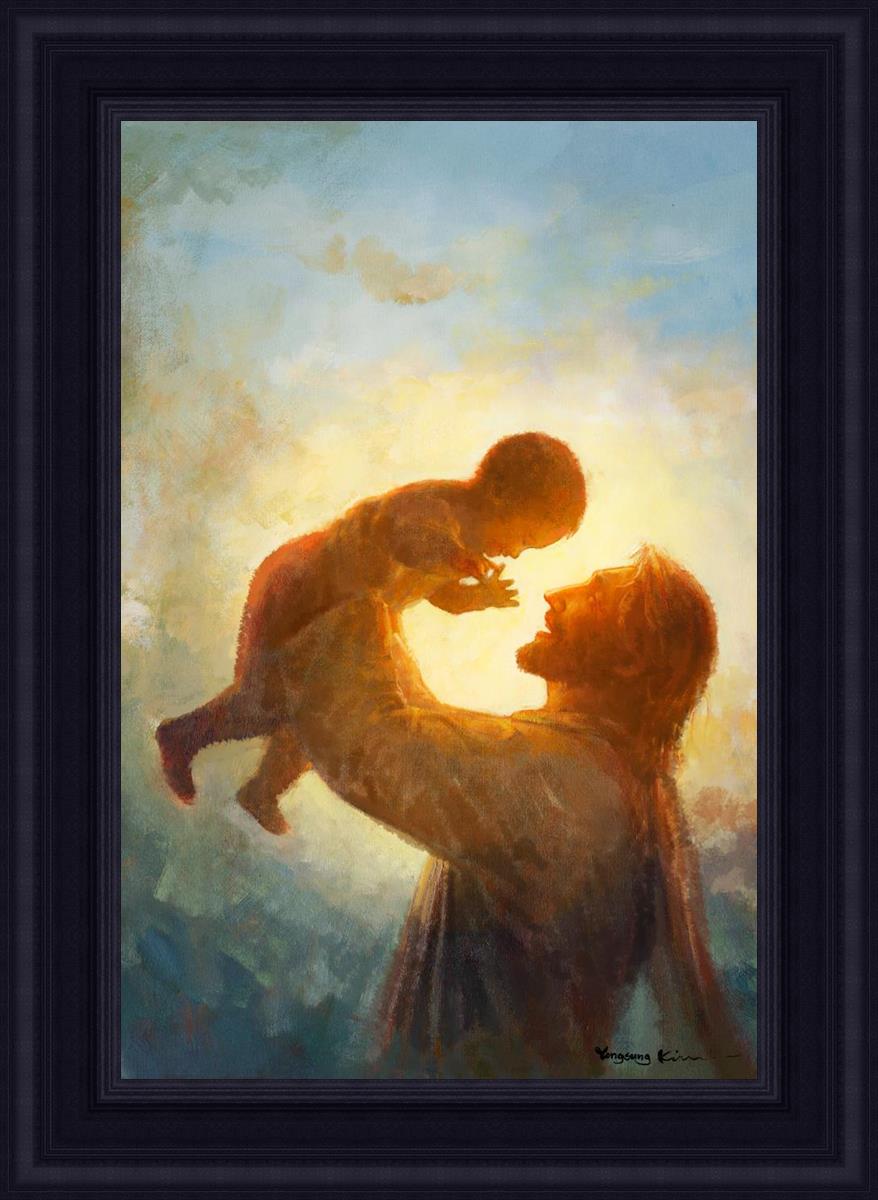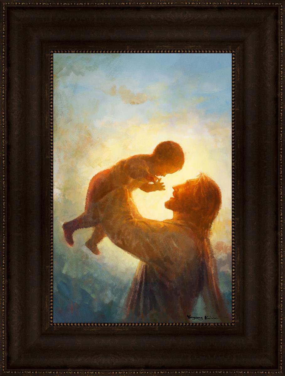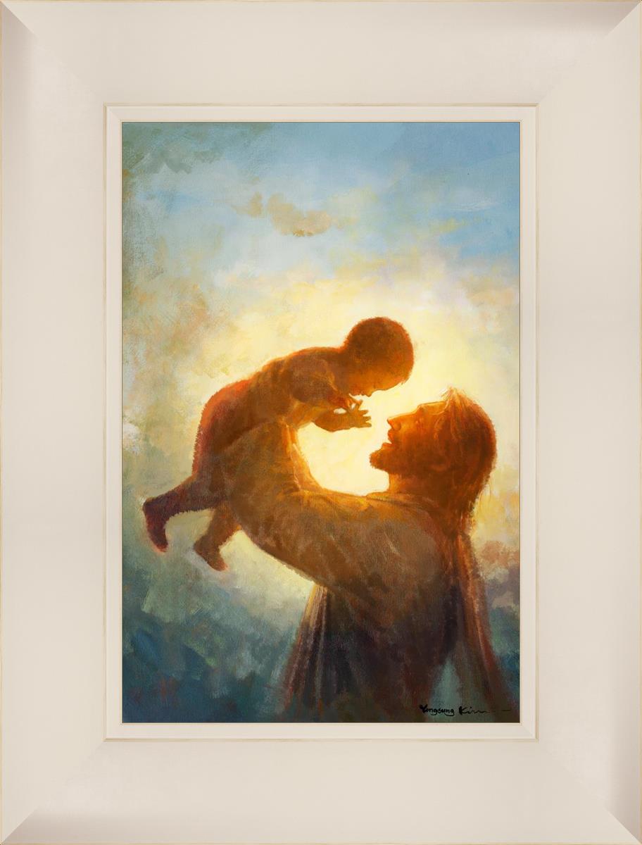This painting depicts Jesus Christ lifting a child high above His head, bathed in the warm glow of sunlight streaming from behind. The child’s joyful expression and the radiant light symbolize the purity and innocence of faith. The connection between Jesus and the child exudes warmth, protection, and the promise of eternal care. Heaven's Gift invites viewers to find joy and comfort in the presence of His grace, recognizing that, like the child, they are always held in God's loving arms.
