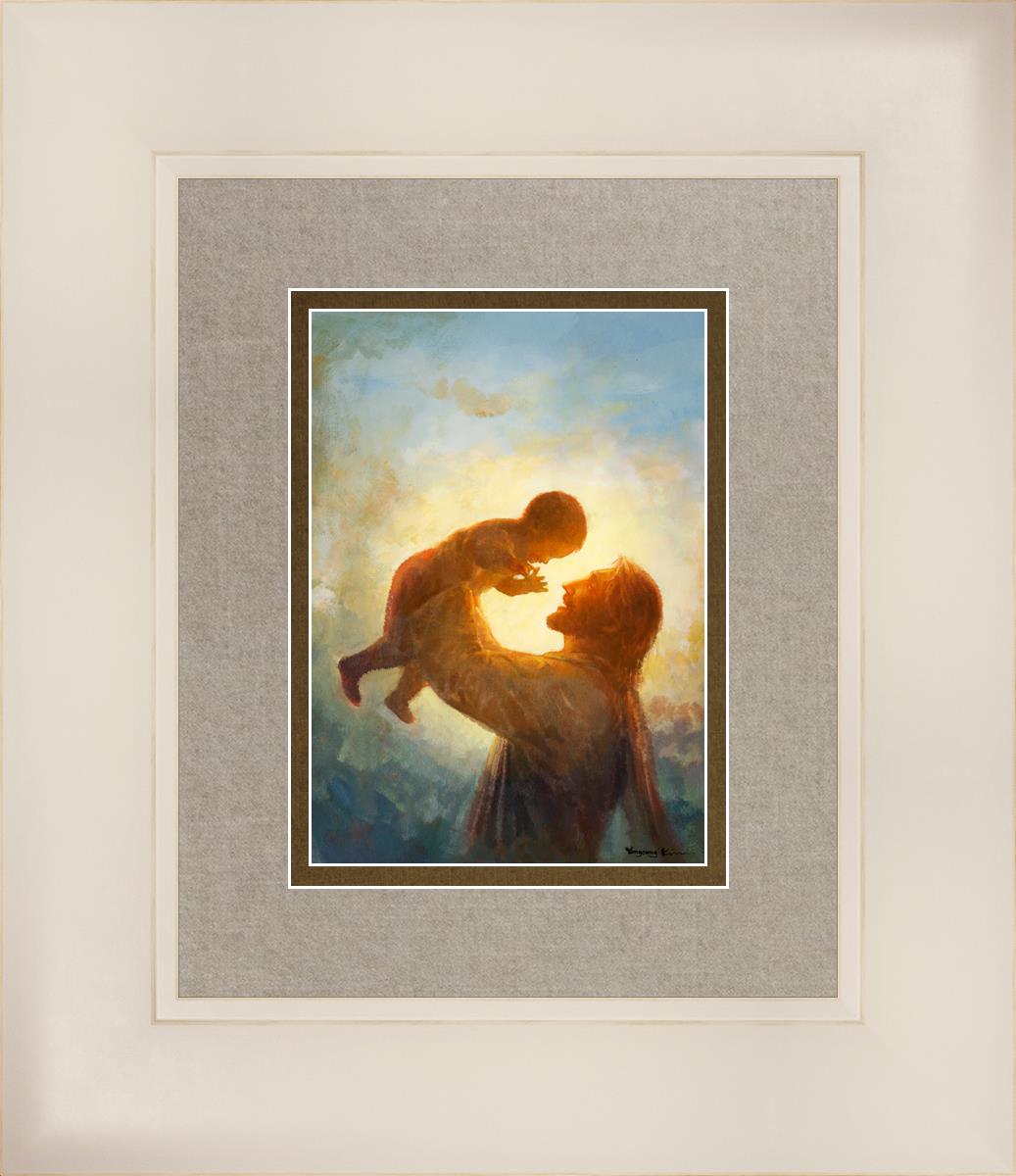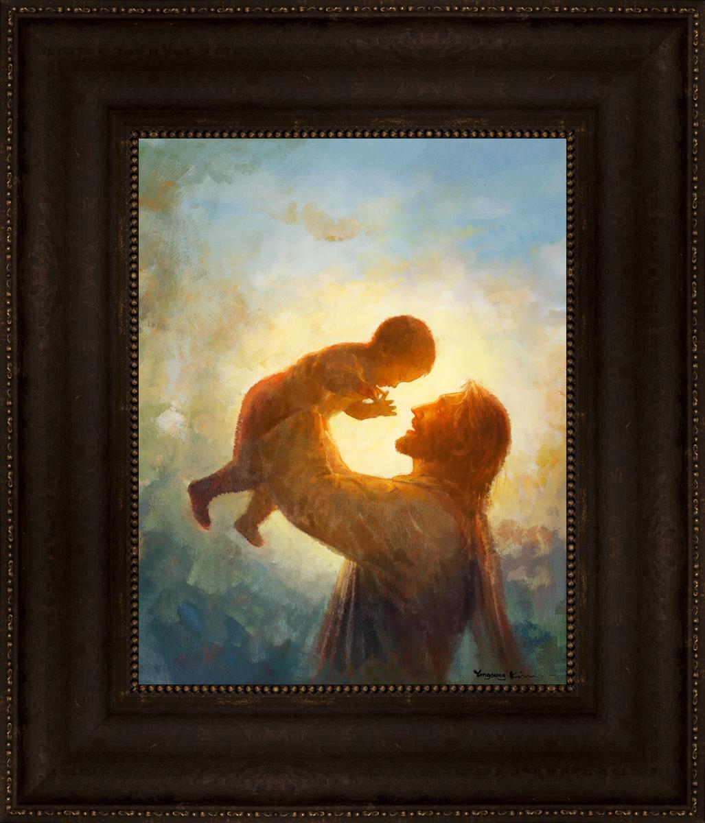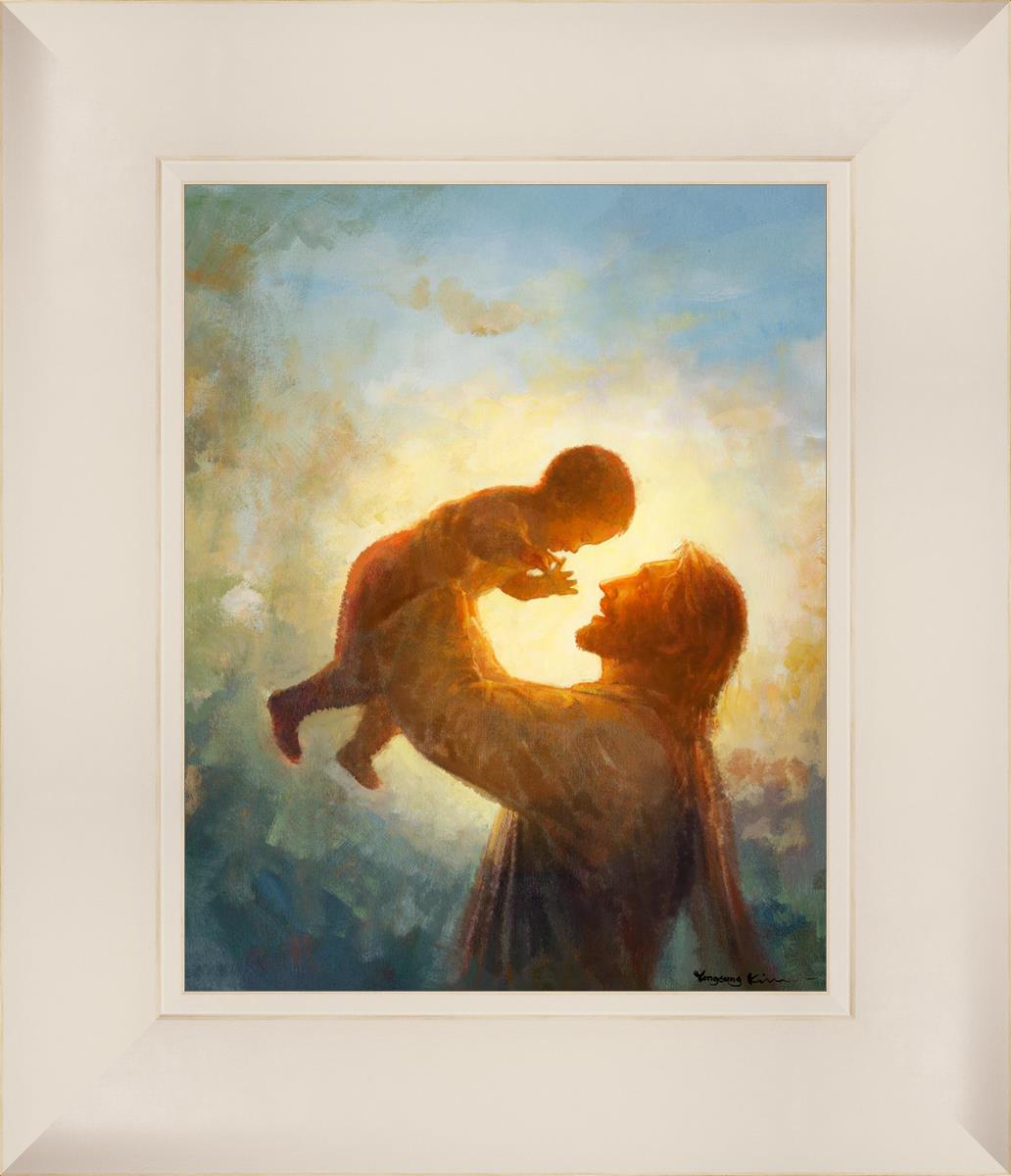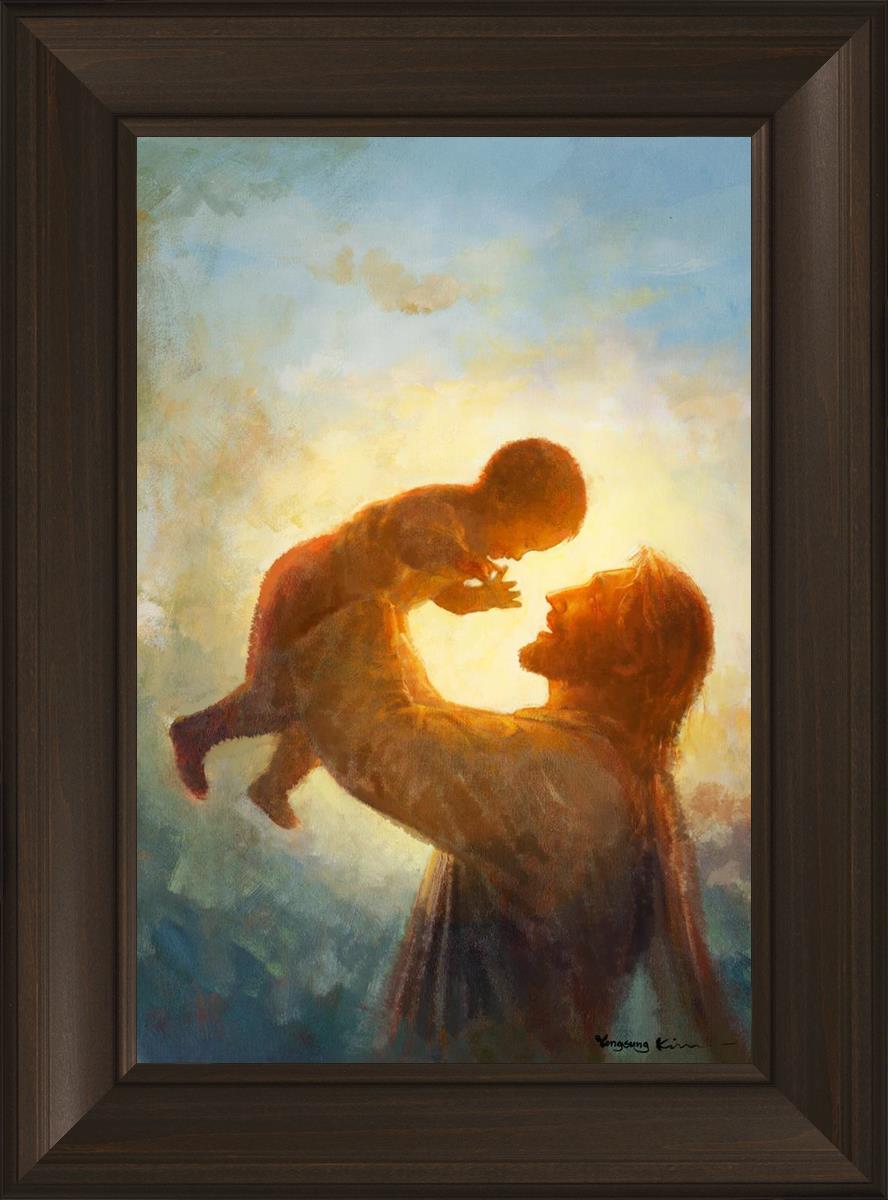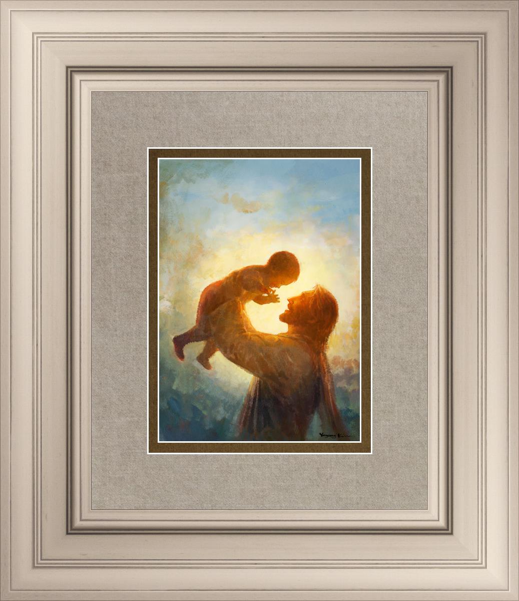This painting depicts Jesus Christ lifting a child high above His head, bathed in the warm glow of sunlight streaming from behind. The child’s joyful expression and the radiant light symbolize the purity and innocence of faith. The connection between Jesus and the child exudes warmth, protection, and the promise of eternal care. Heaven's Gift invites viewers to find joy and comfort in the presence of His grace, recognizing that, like the child, they are always held in God's loving arms.