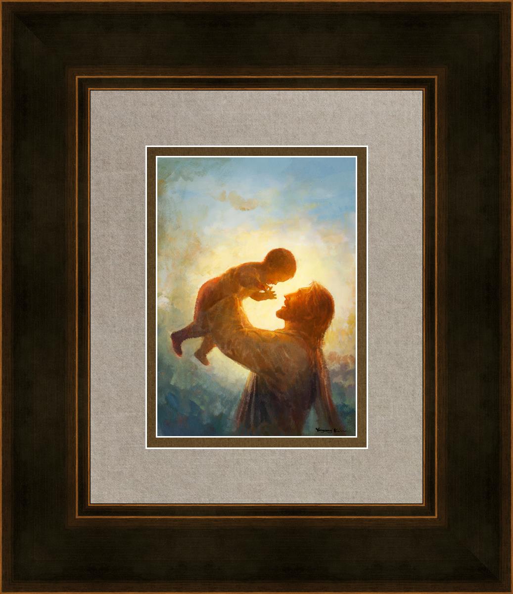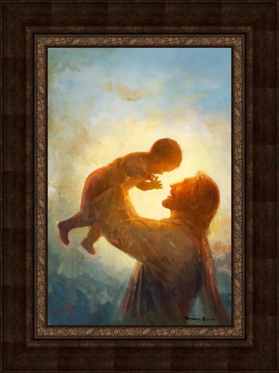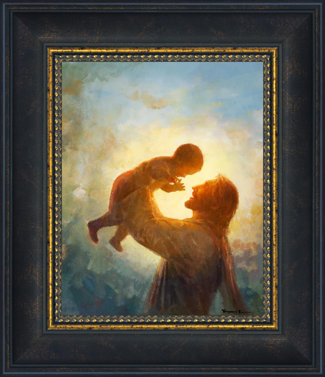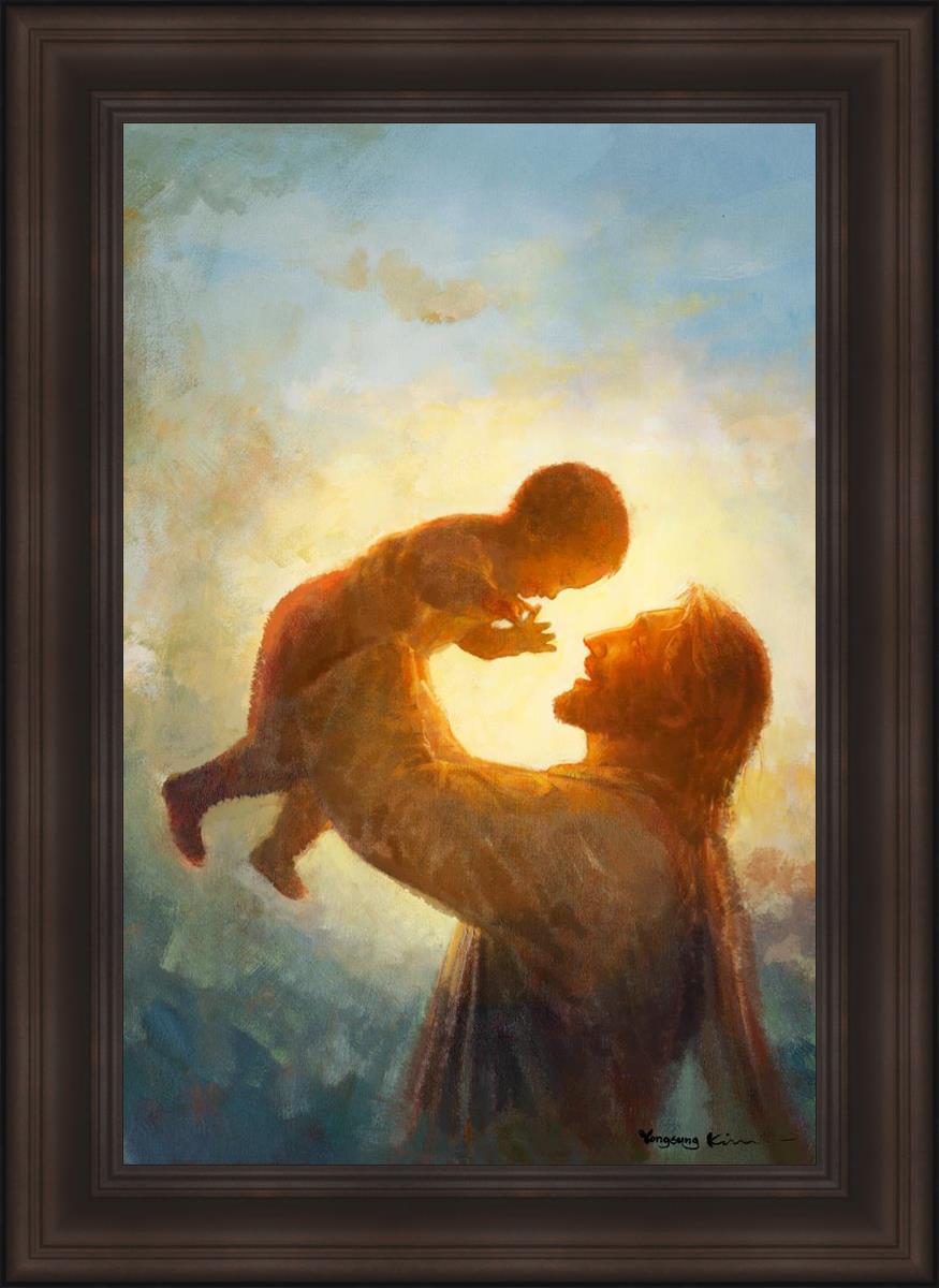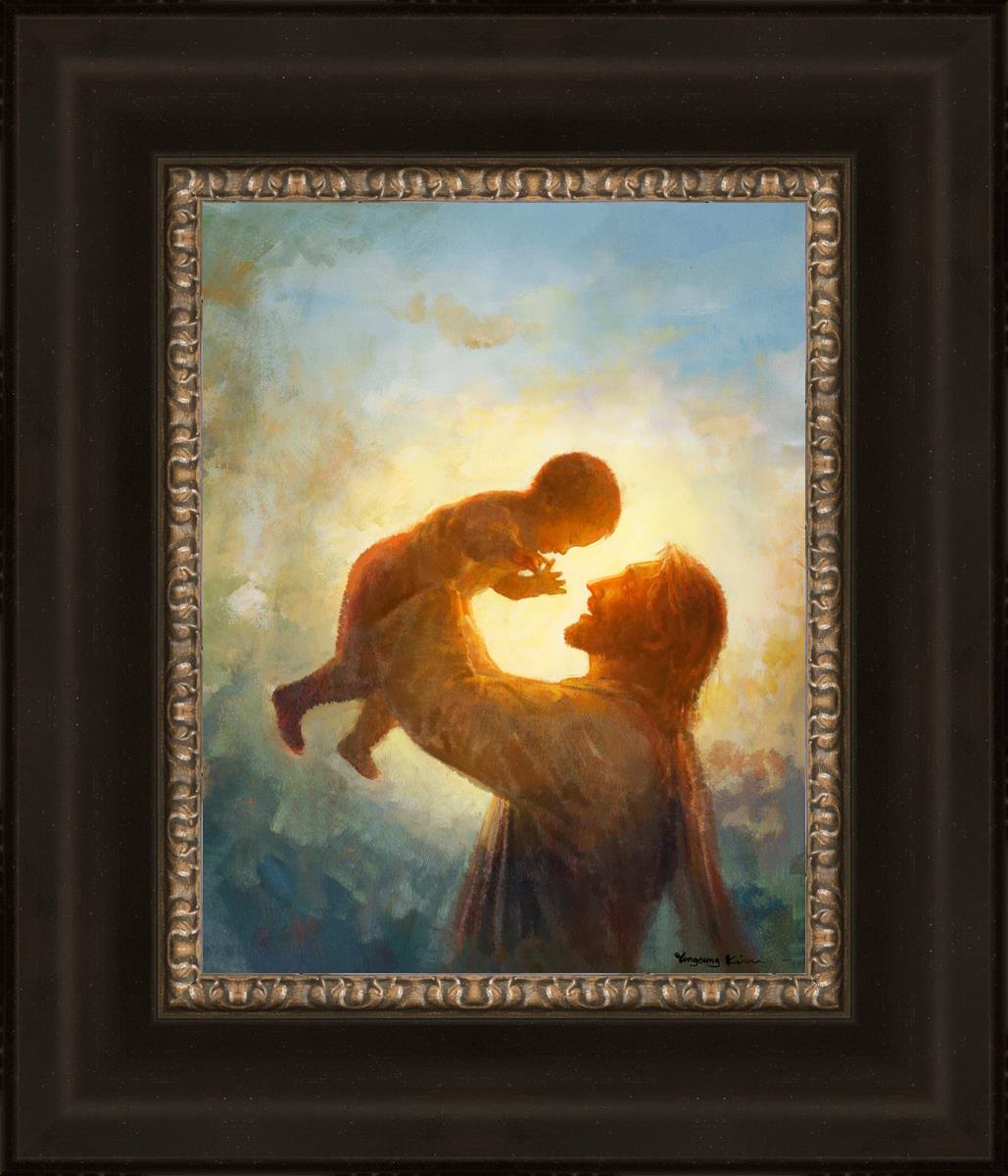 This painting depicts Jesus Christ lifting a child high above His head, bathed in the warm glow of sunlight streaming from behind. The child’s joyful expression and the radiant light symbolize the purity and innocence of faith. The connection between Jesus and the child exudes warmth, protection, and the promise of eternal care. Heaven's Gift invites viewers to find joy and comfort in the presence of His grace, recognizing that, like the child, they are always held in God's loving arms.