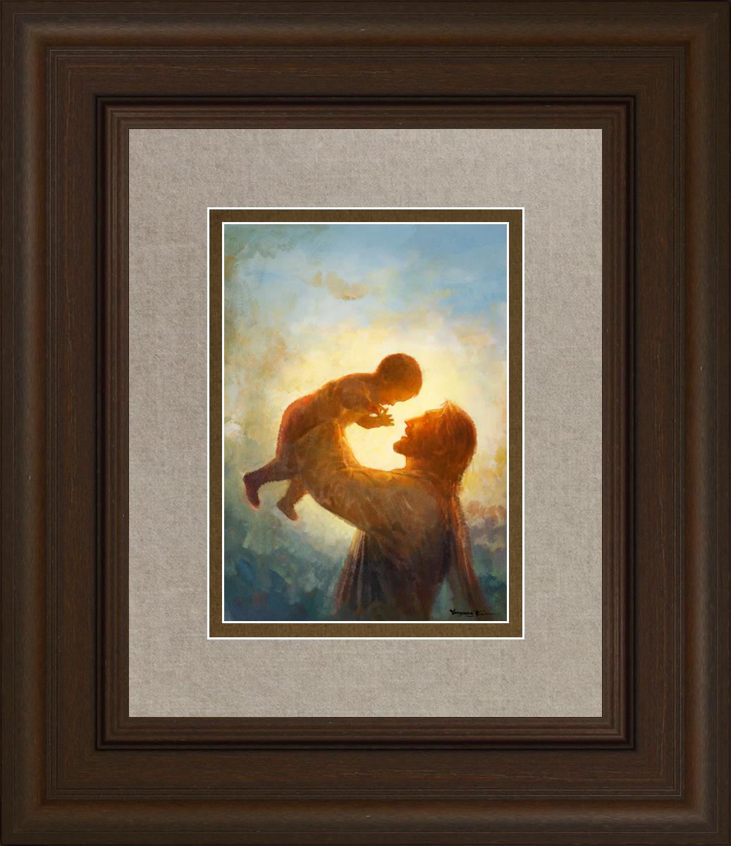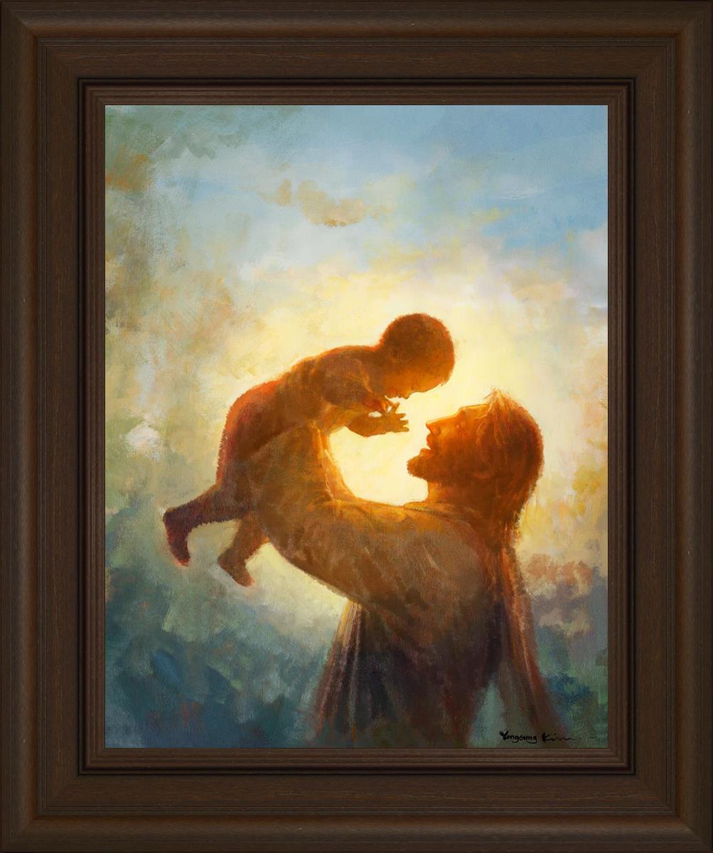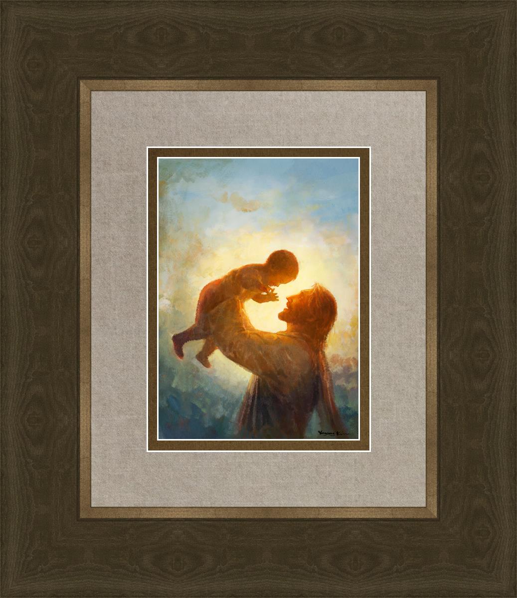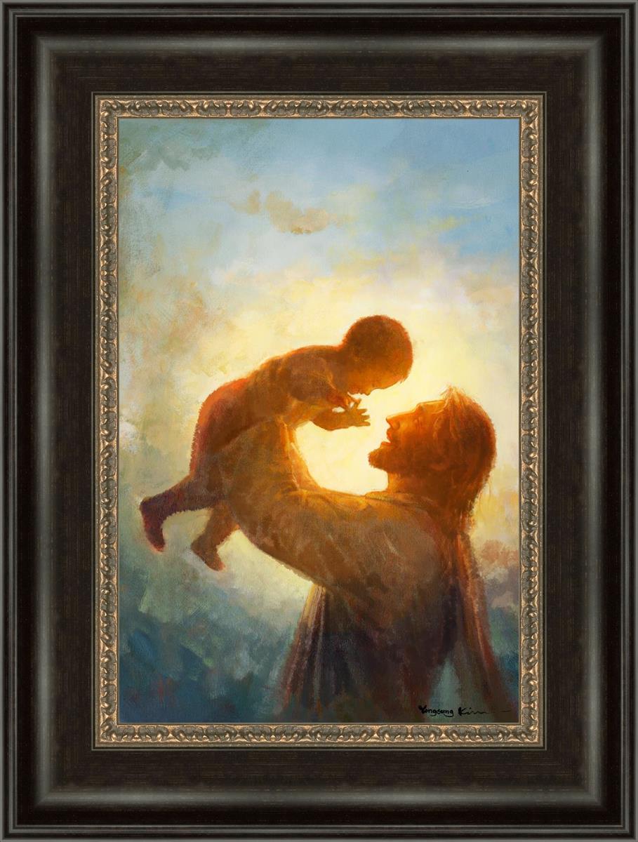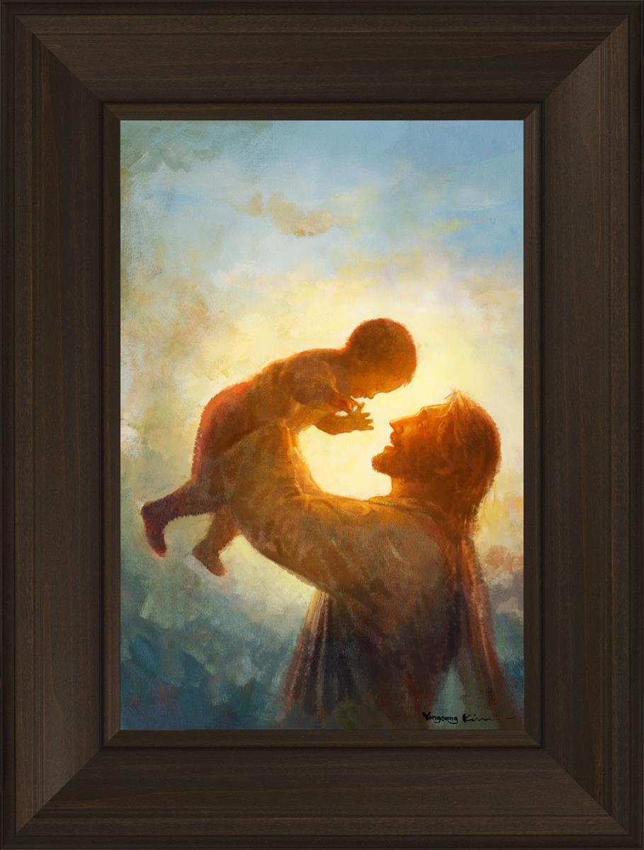 This painting depicts Jesus Christ lifting a child high above His head, bathed in the warm glow of sunlight streaming from behind. The child’s joyful expression and the radiant light symbolize the purity and innocence of faith. The connection between Jesus and the child exudes warmth, protection, and the promise of eternal care. Heaven's Gift invites viewers to find joy and comfort in the presence of His grace, recognizing that, like the child, they are always held in God's loving arms.