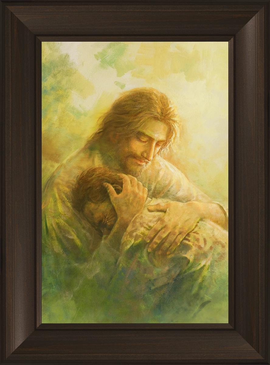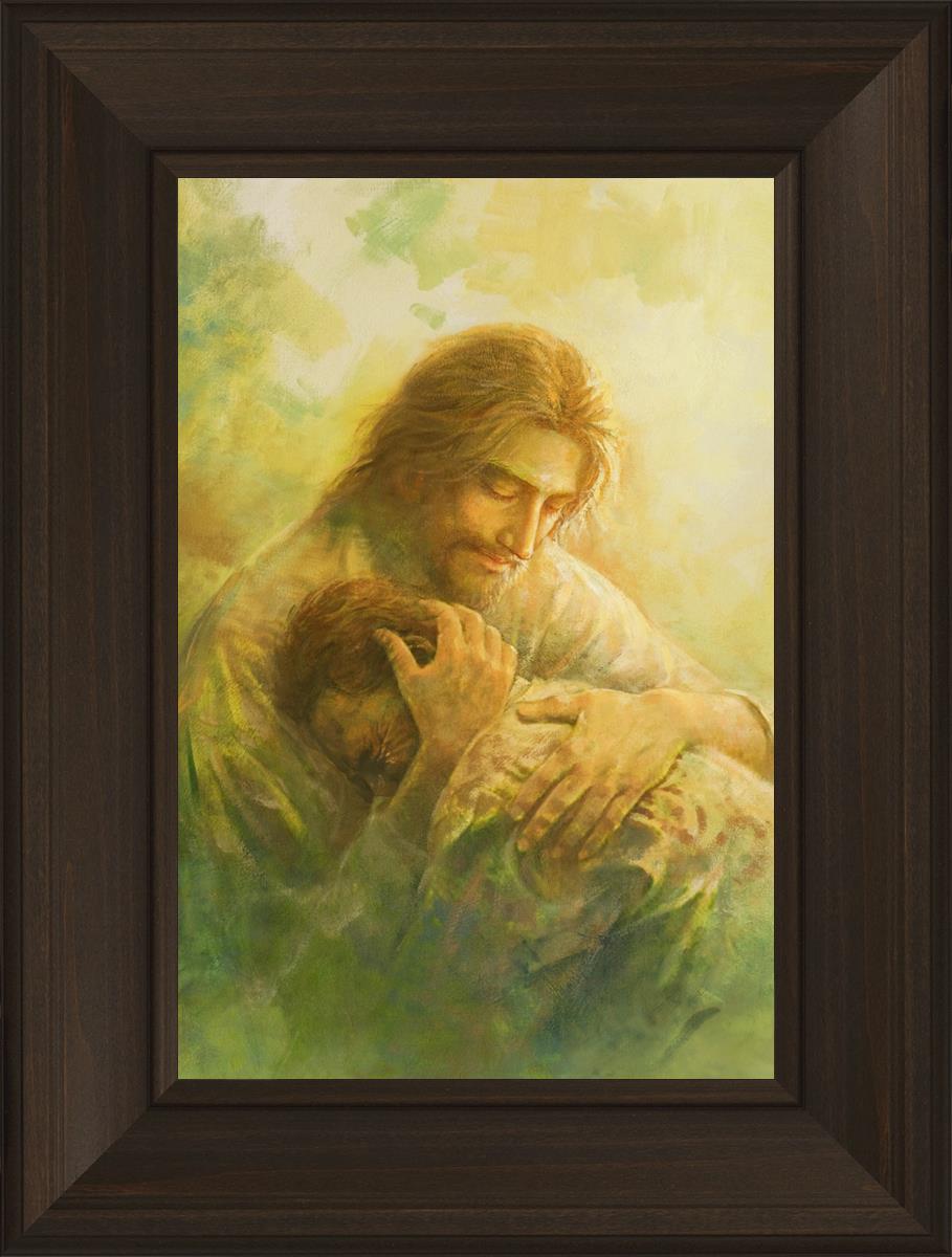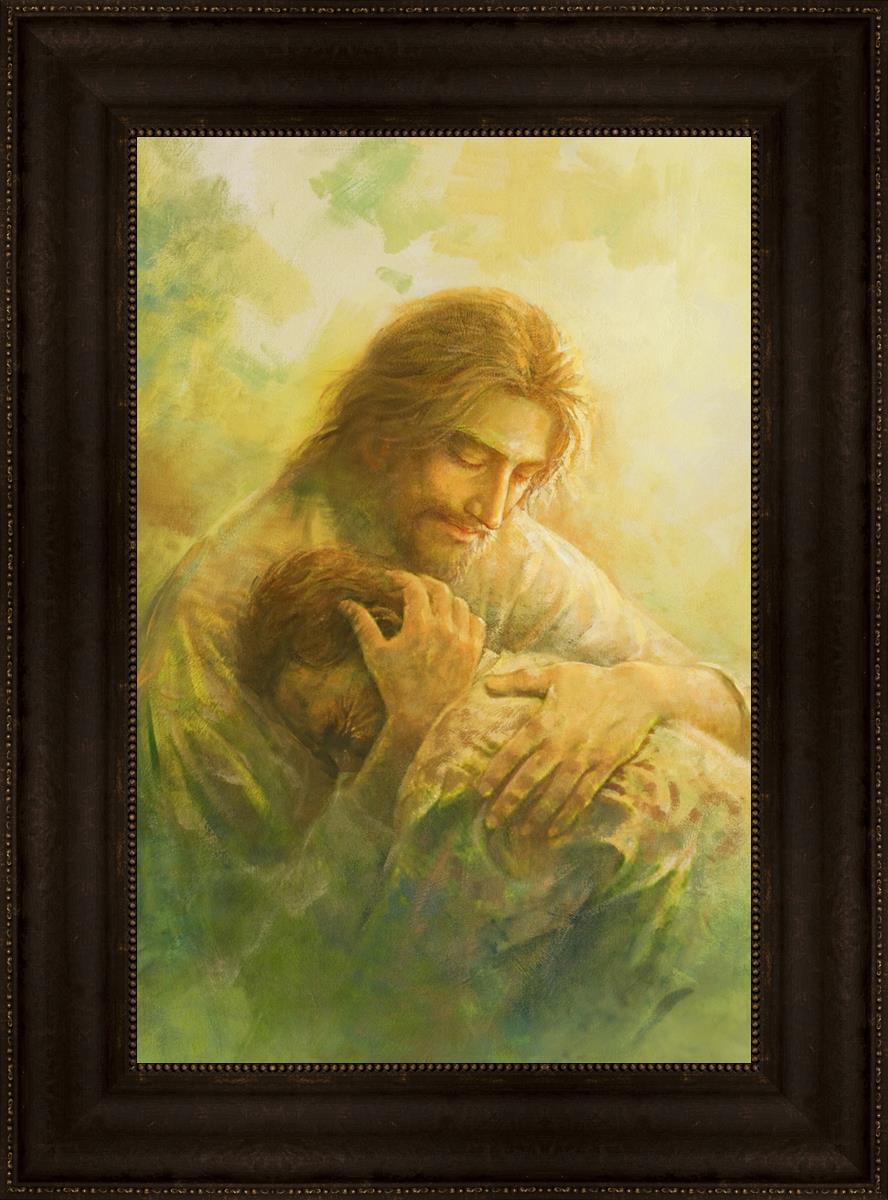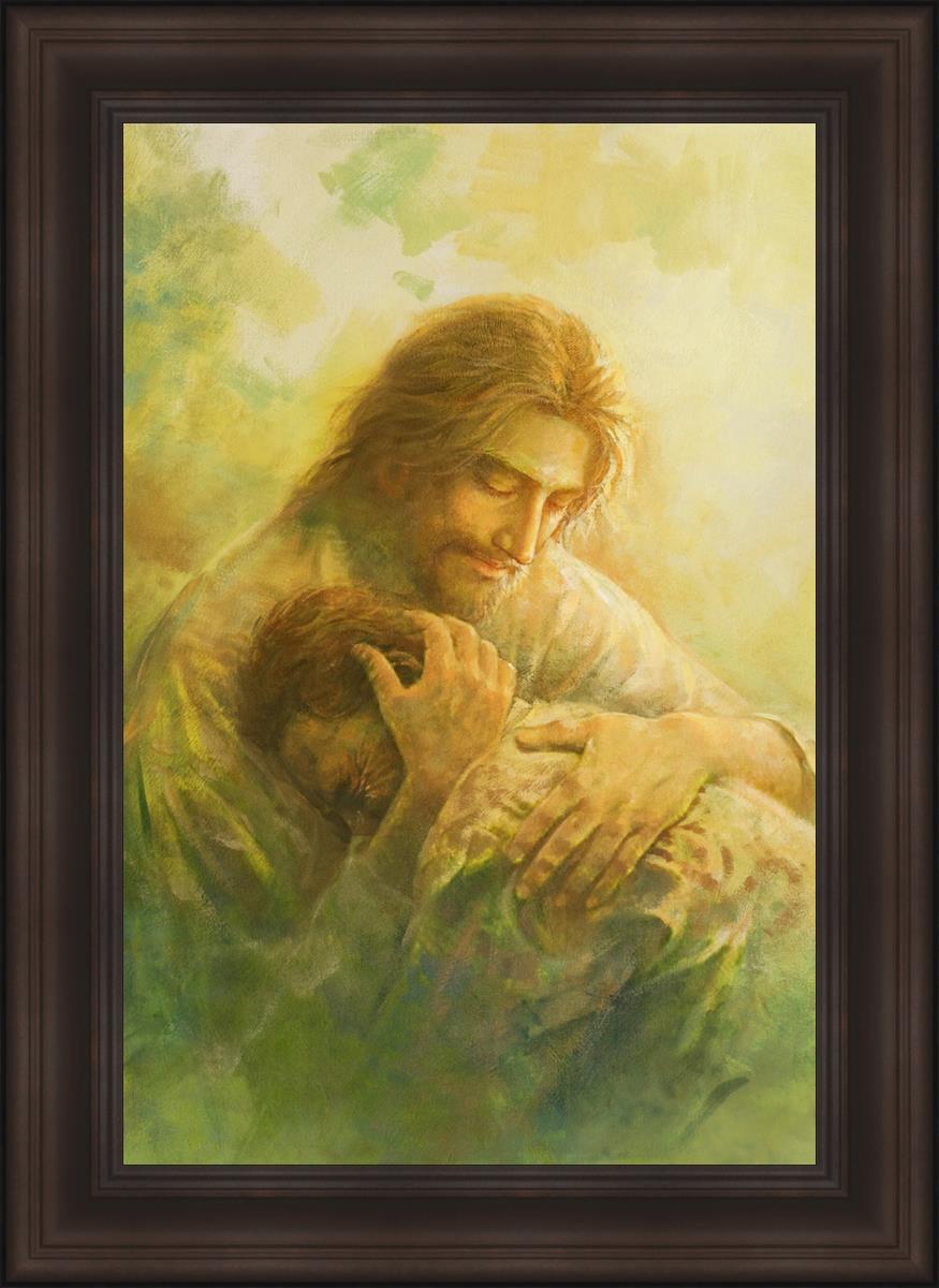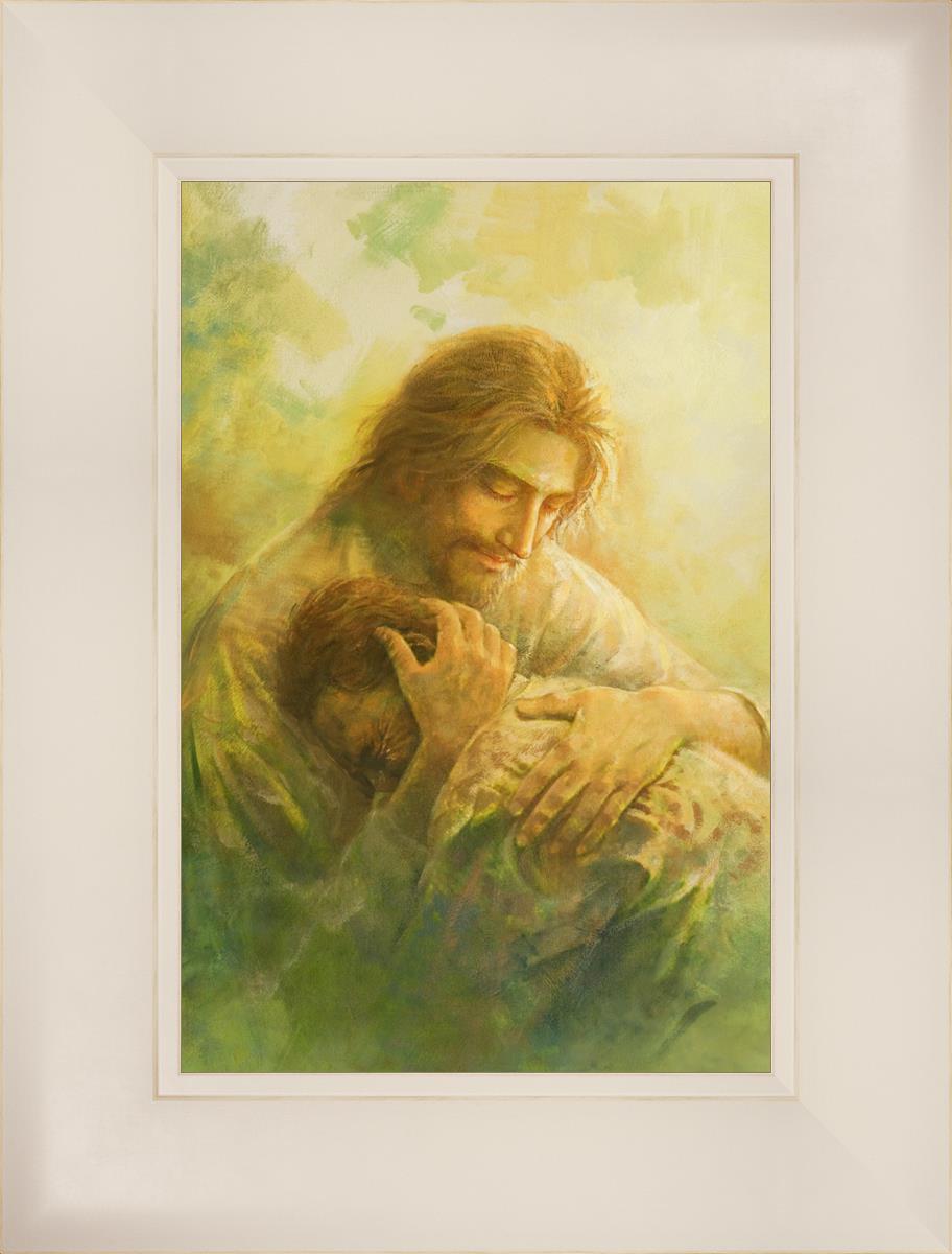 I Will Give You Rest by Yongsung Kim depicts Jesus hugging a repentantant man to his shoulder. This painting is available in print and canvas.