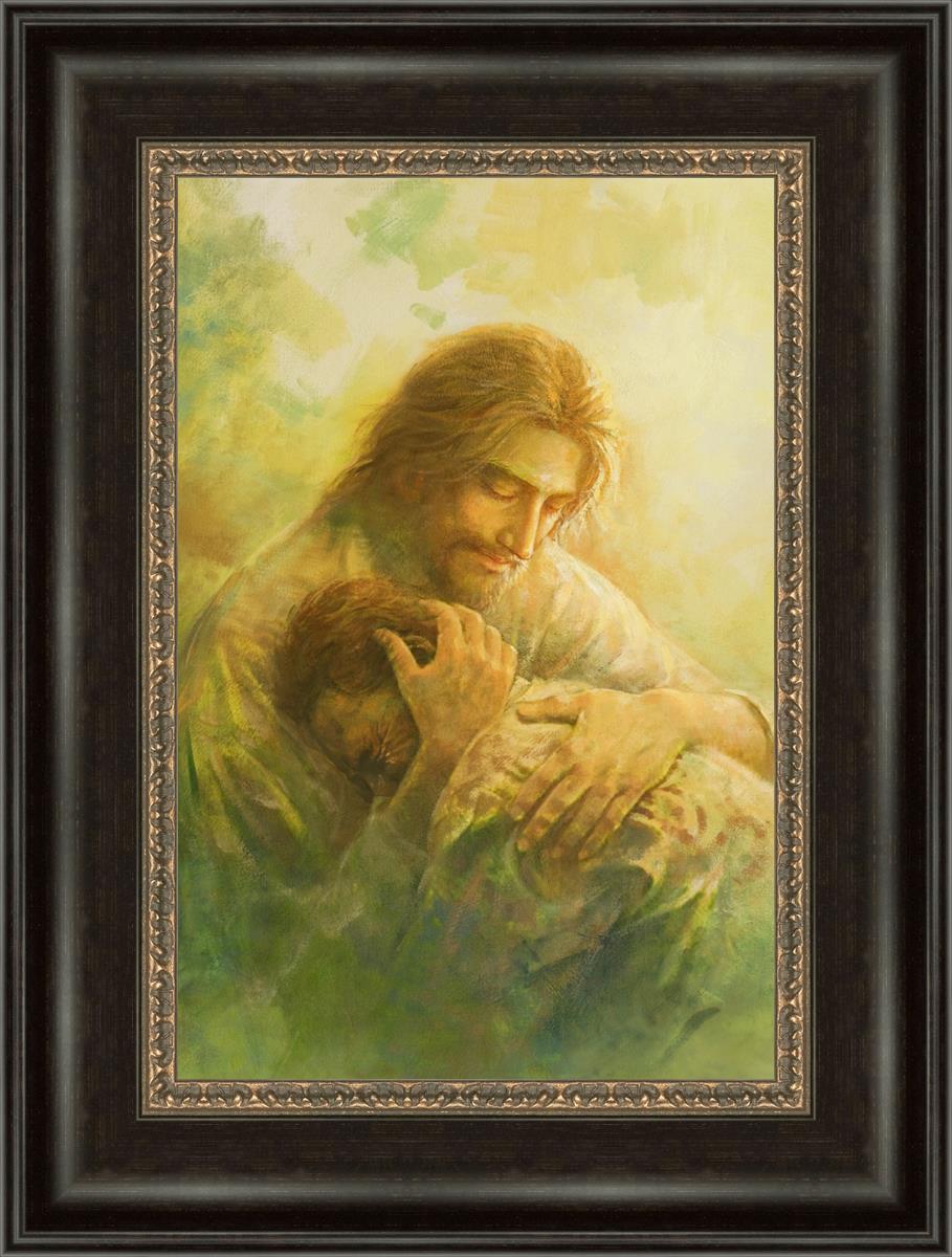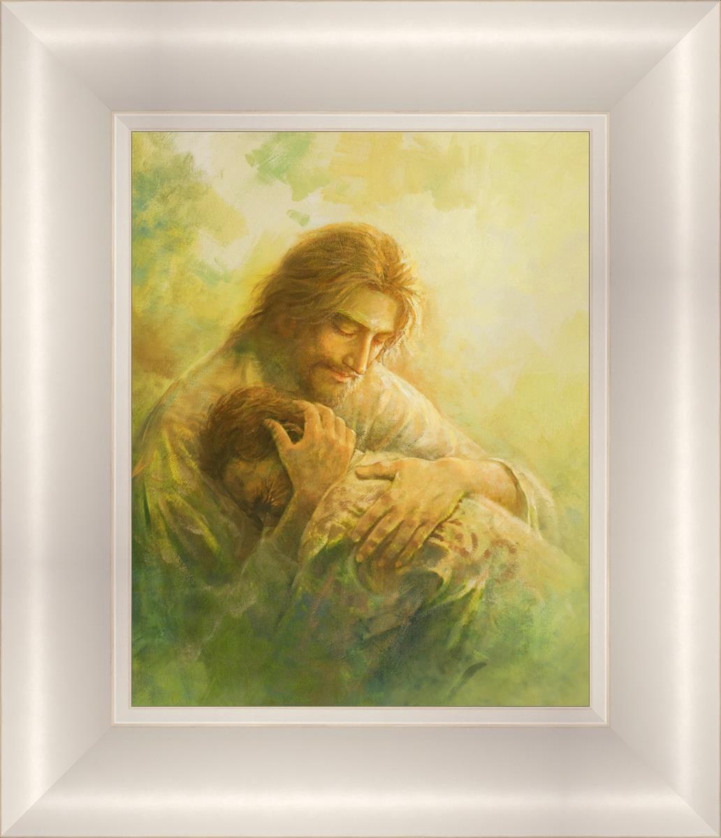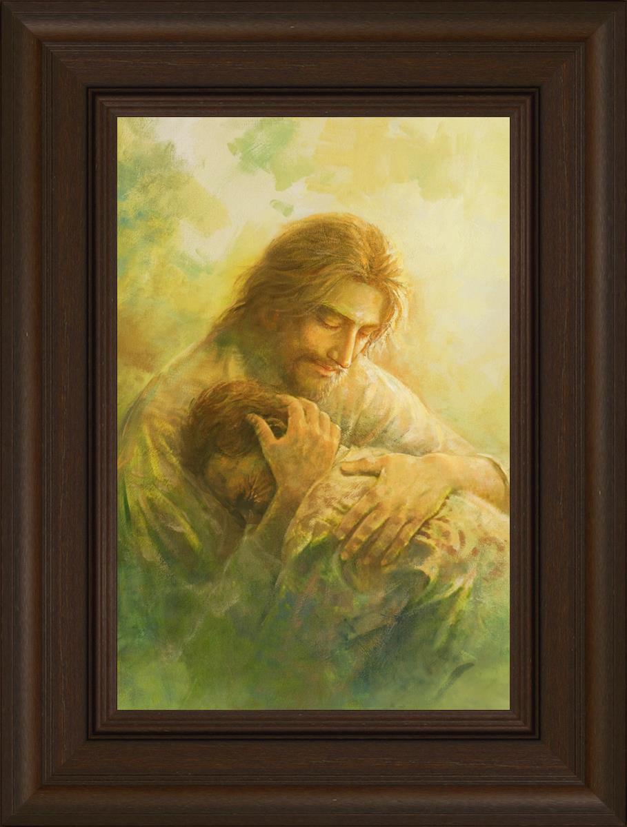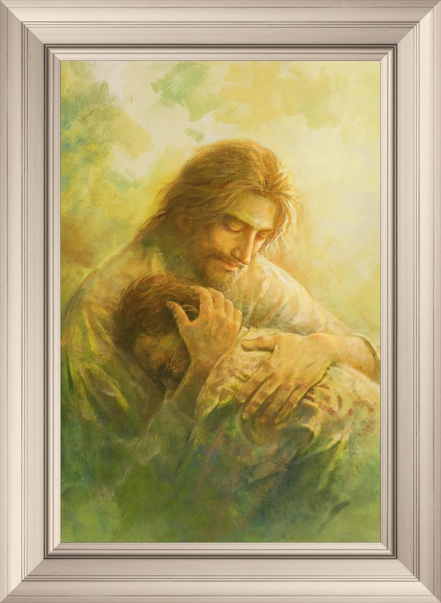 I Will Give You Rest by Yongsung Kim depicts Jesus hugging a repentantant man to his shoulder. This painting is available in print and canvas.