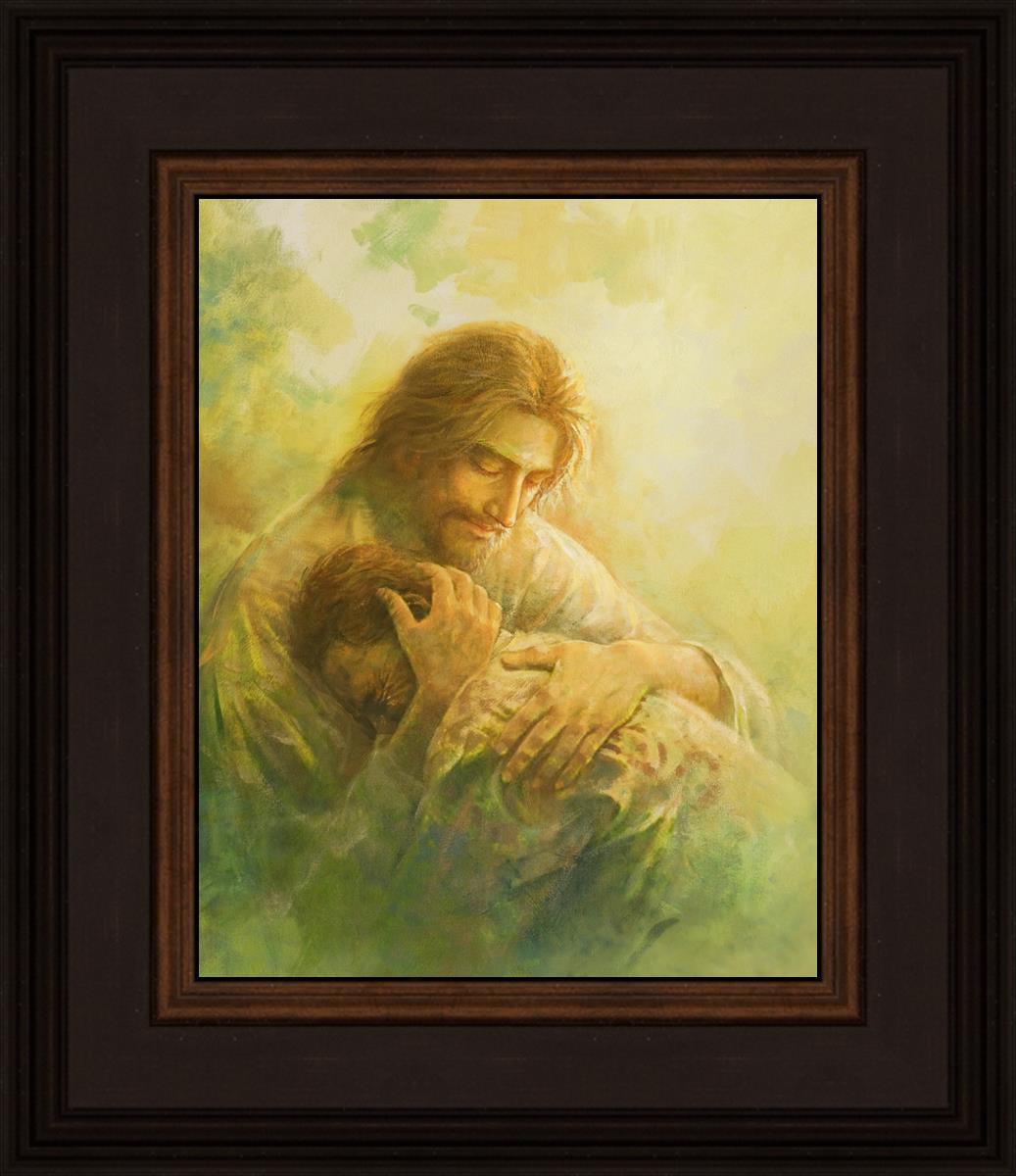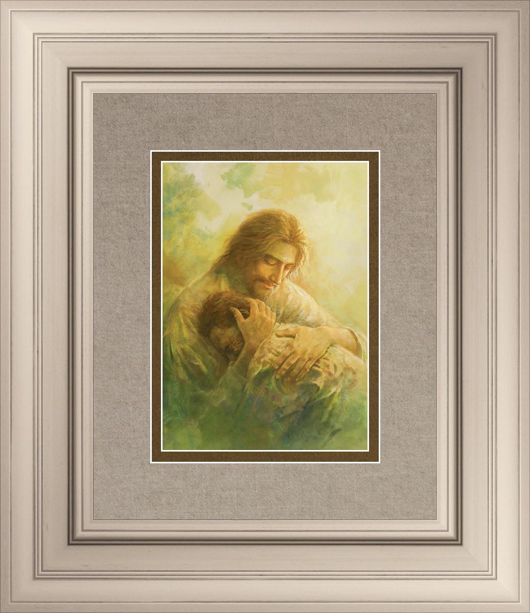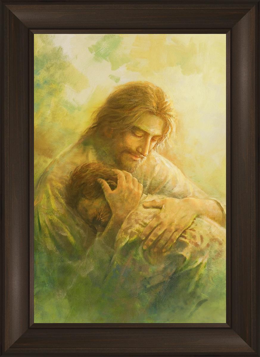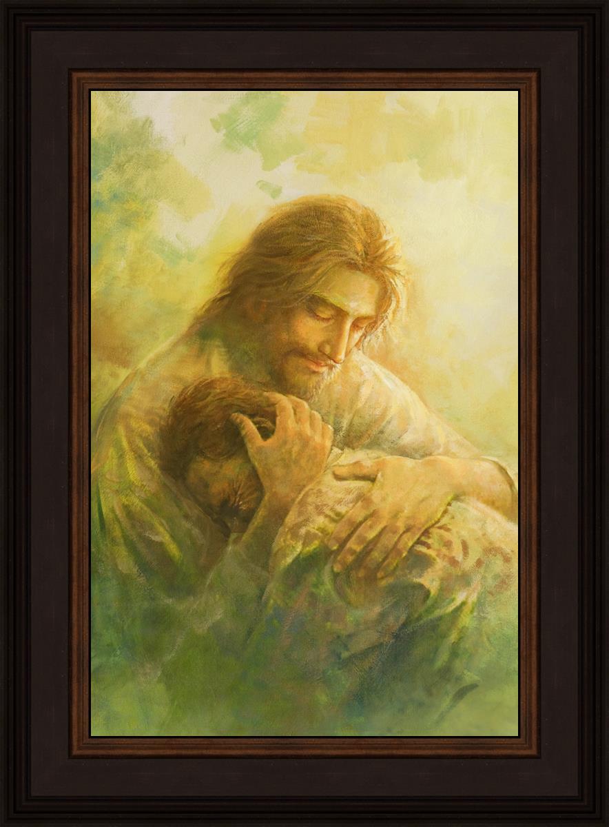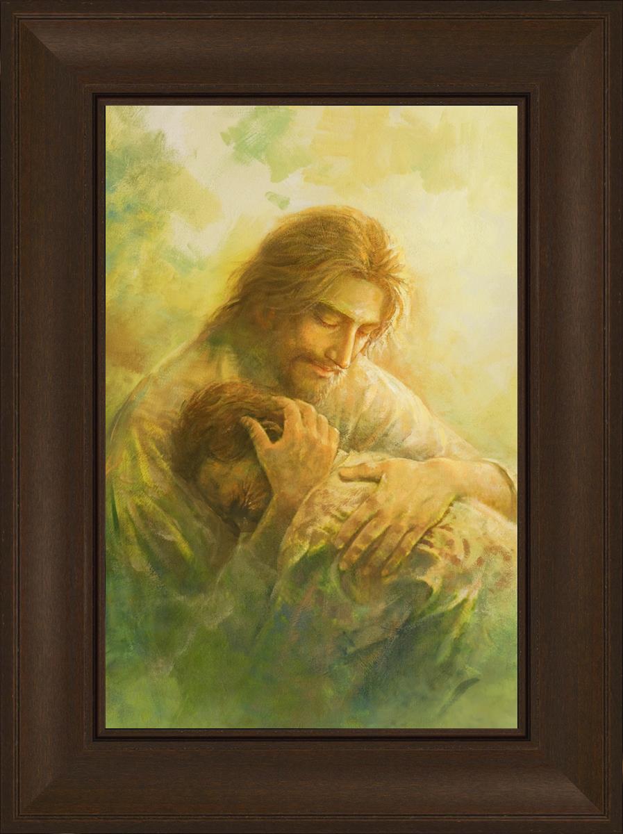 I Will Give You Rest by Yongsung Kim depicts Jesus hugging a repentantant man to his shoulder. This painting is available in print and canvas.