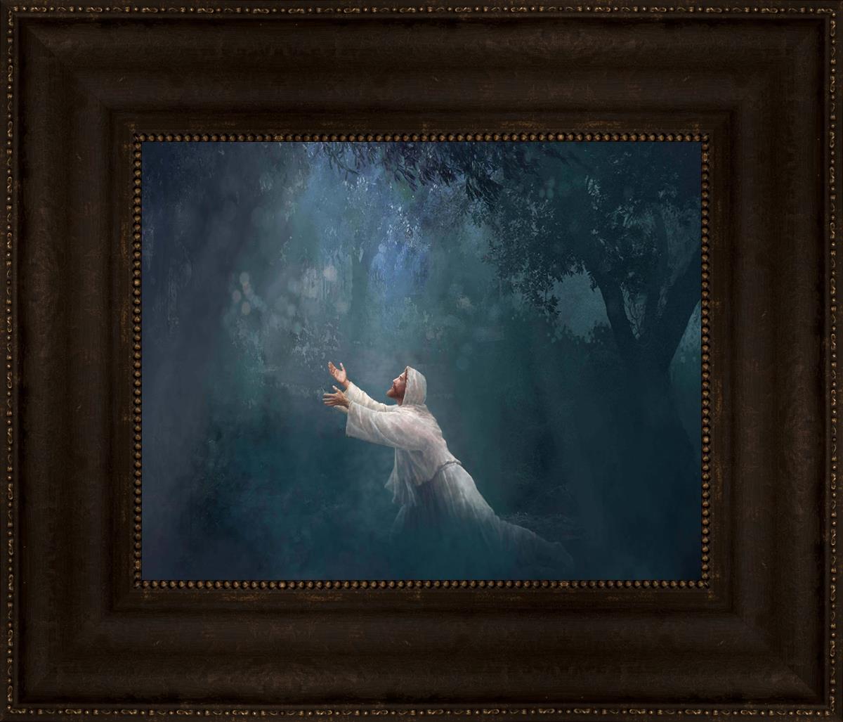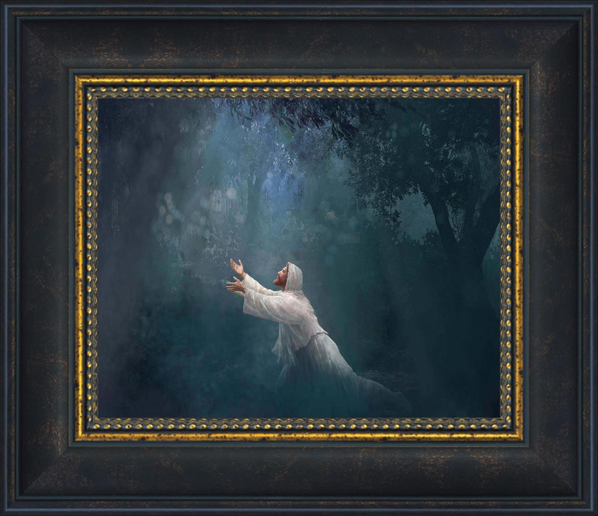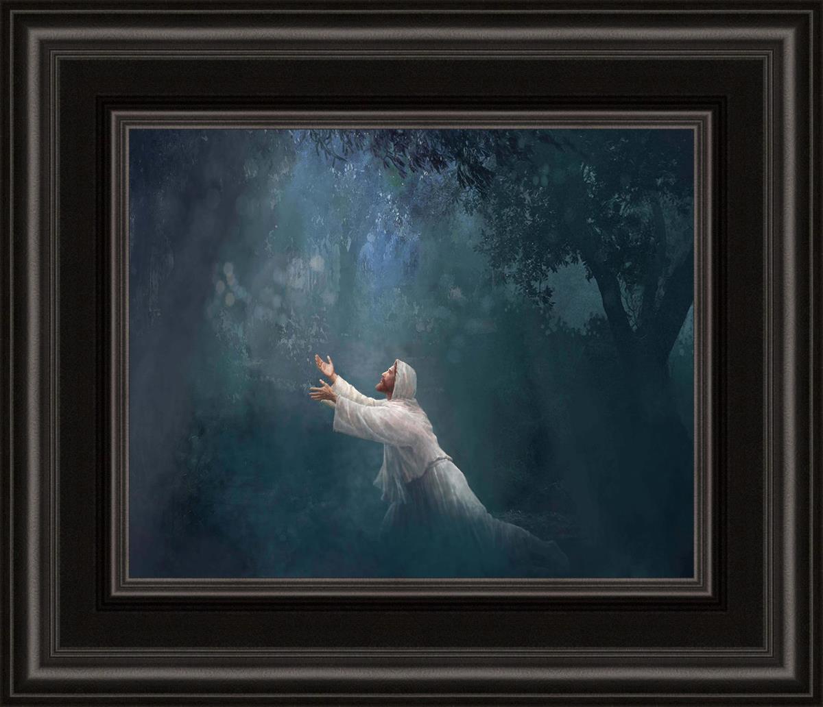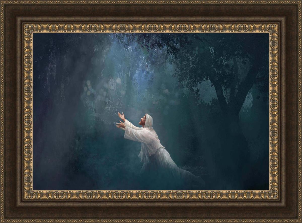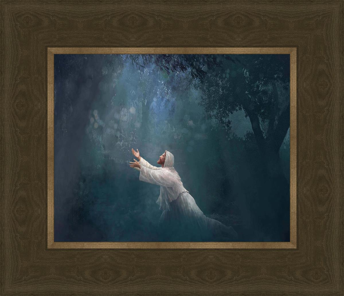 Not My Will But Thine by Yongsung Kim depicts Jesus kneeling in the garden of gethsemane at night with His arms raised to heaven pleading with the Father that if it be possible He let this cup pass by Him. This painting is available in print and canvas.