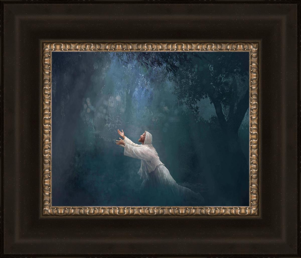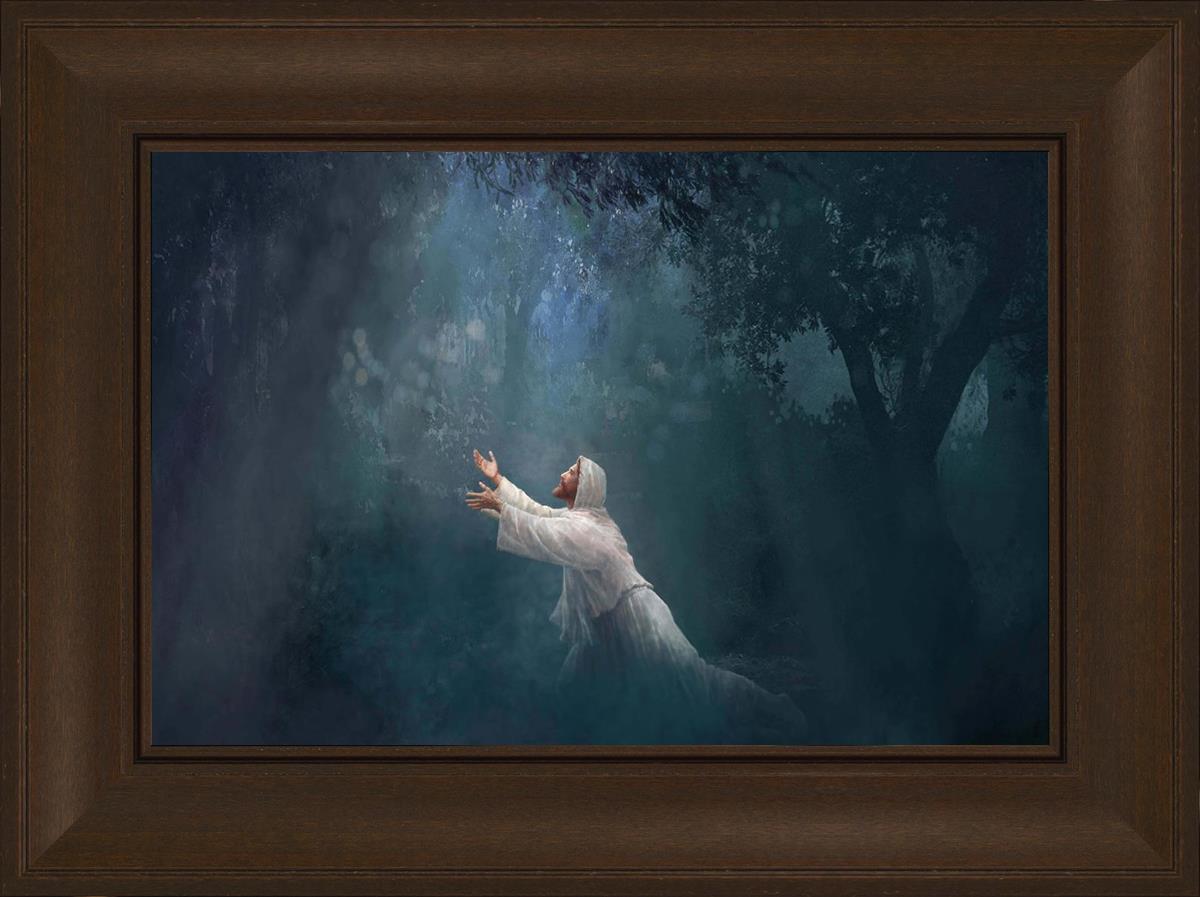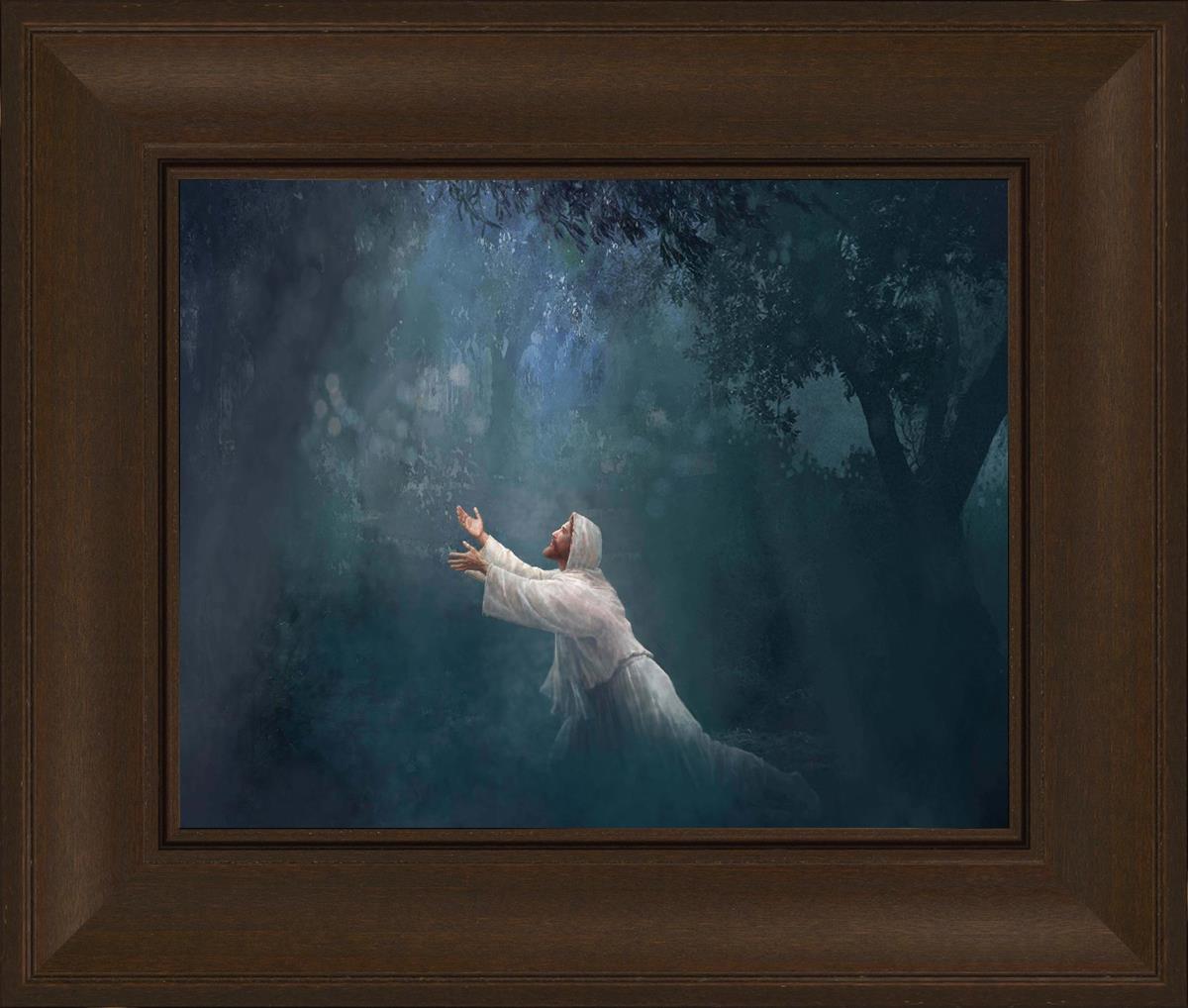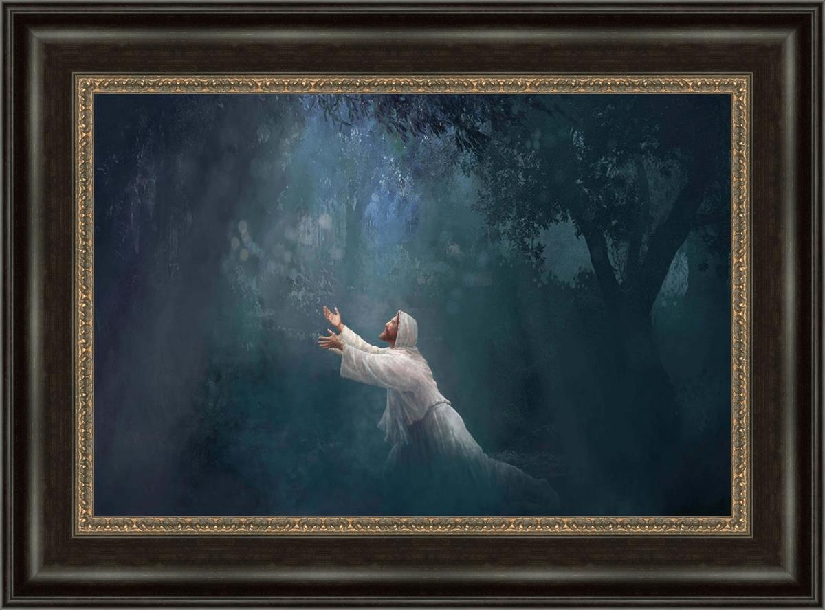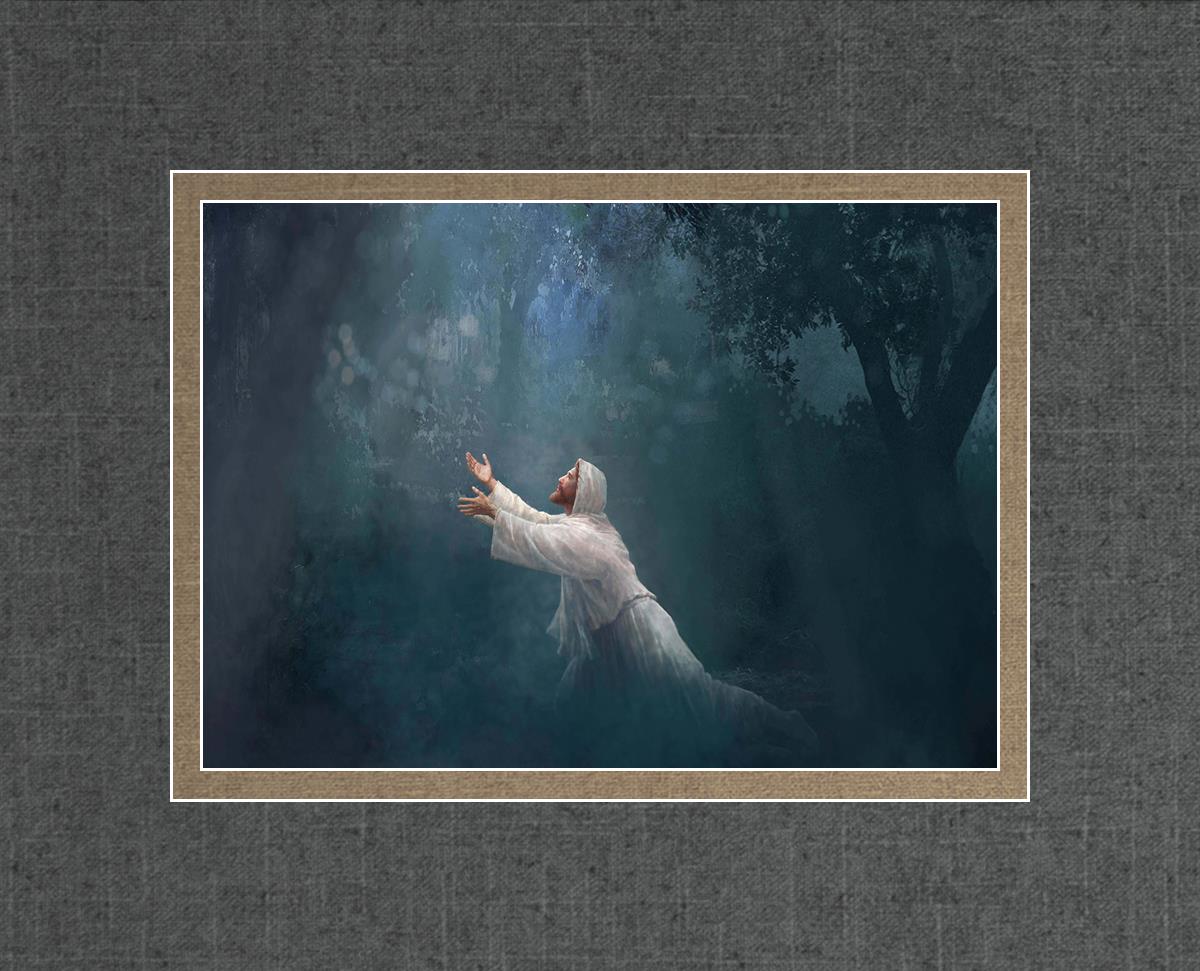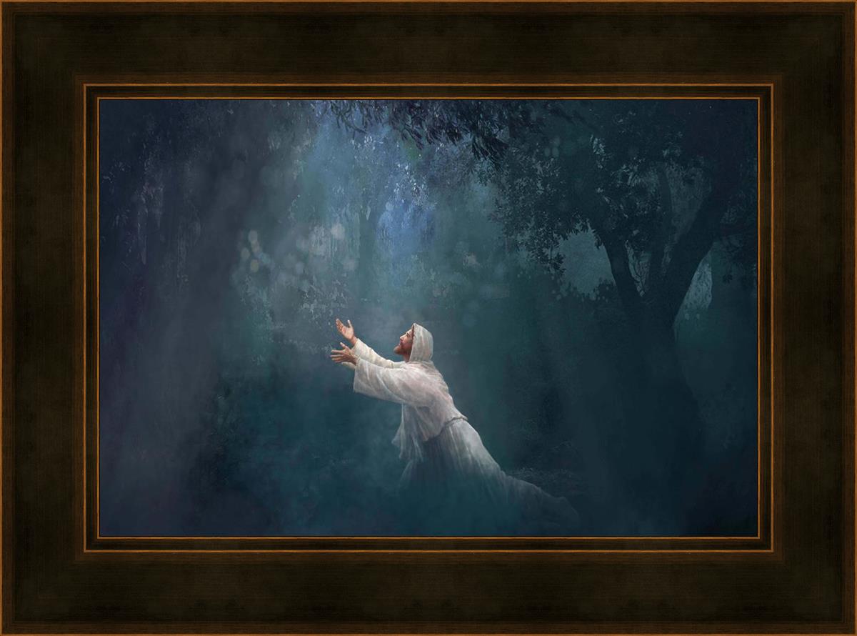 Not My Will But Thine by Yongsung Kim depicts Jesus kneeling in the garden of gethsemane at night with His arms raised to heaven pleading with the Father that if it be possible He let this cup pass by Him. This painting is available in print and canvas.