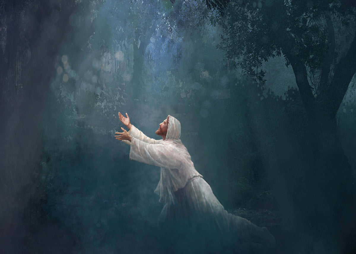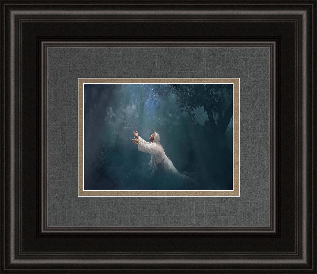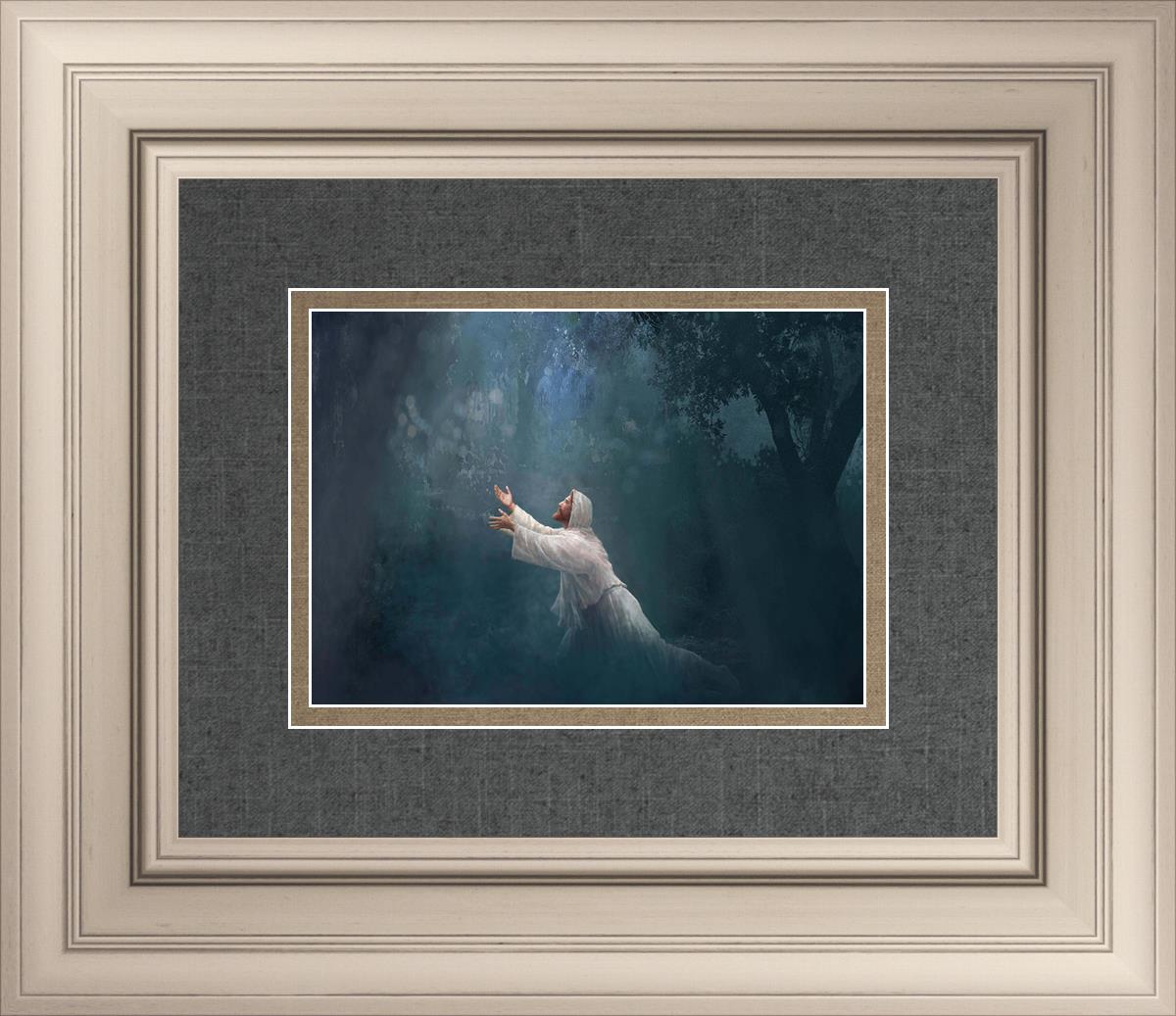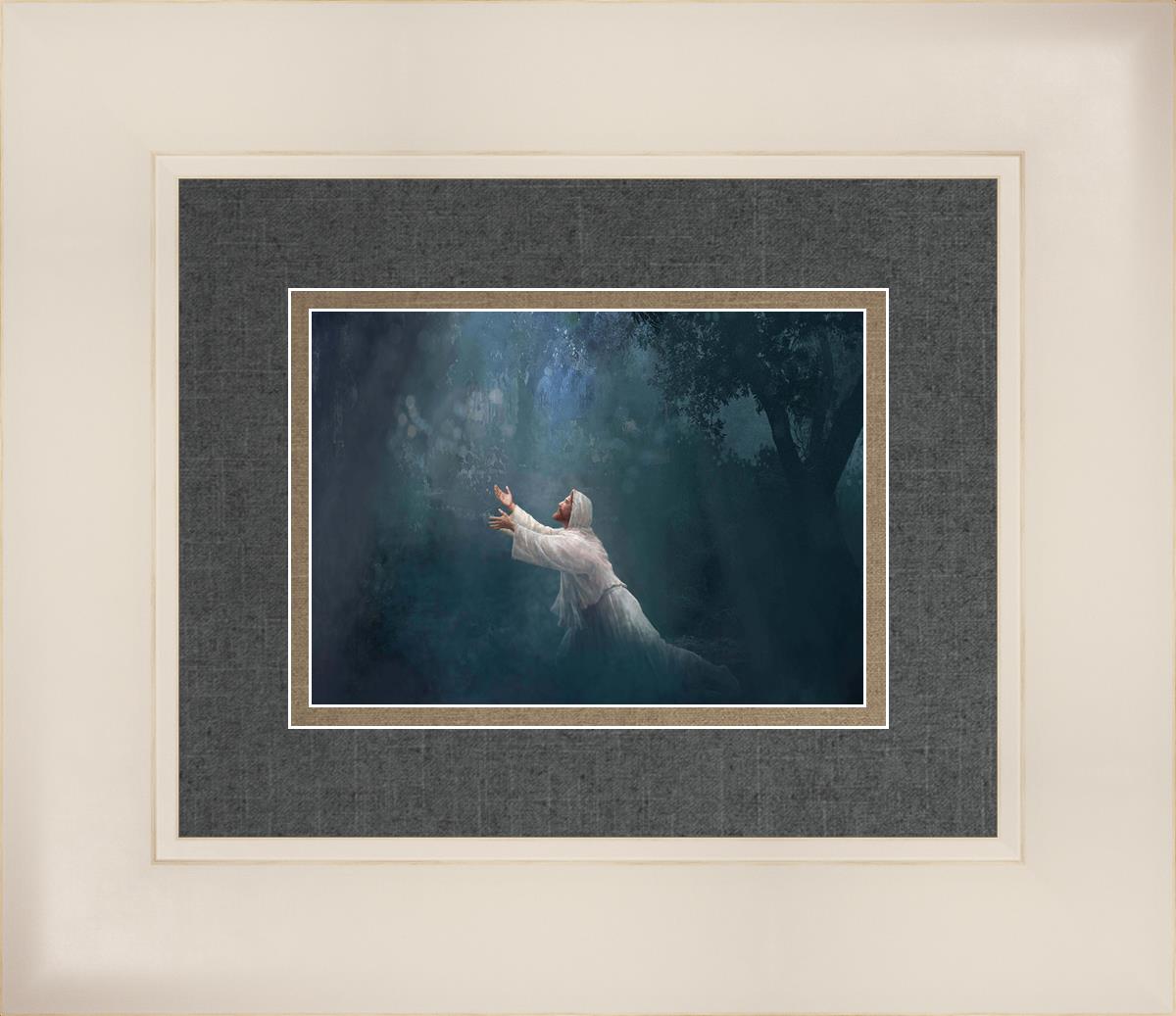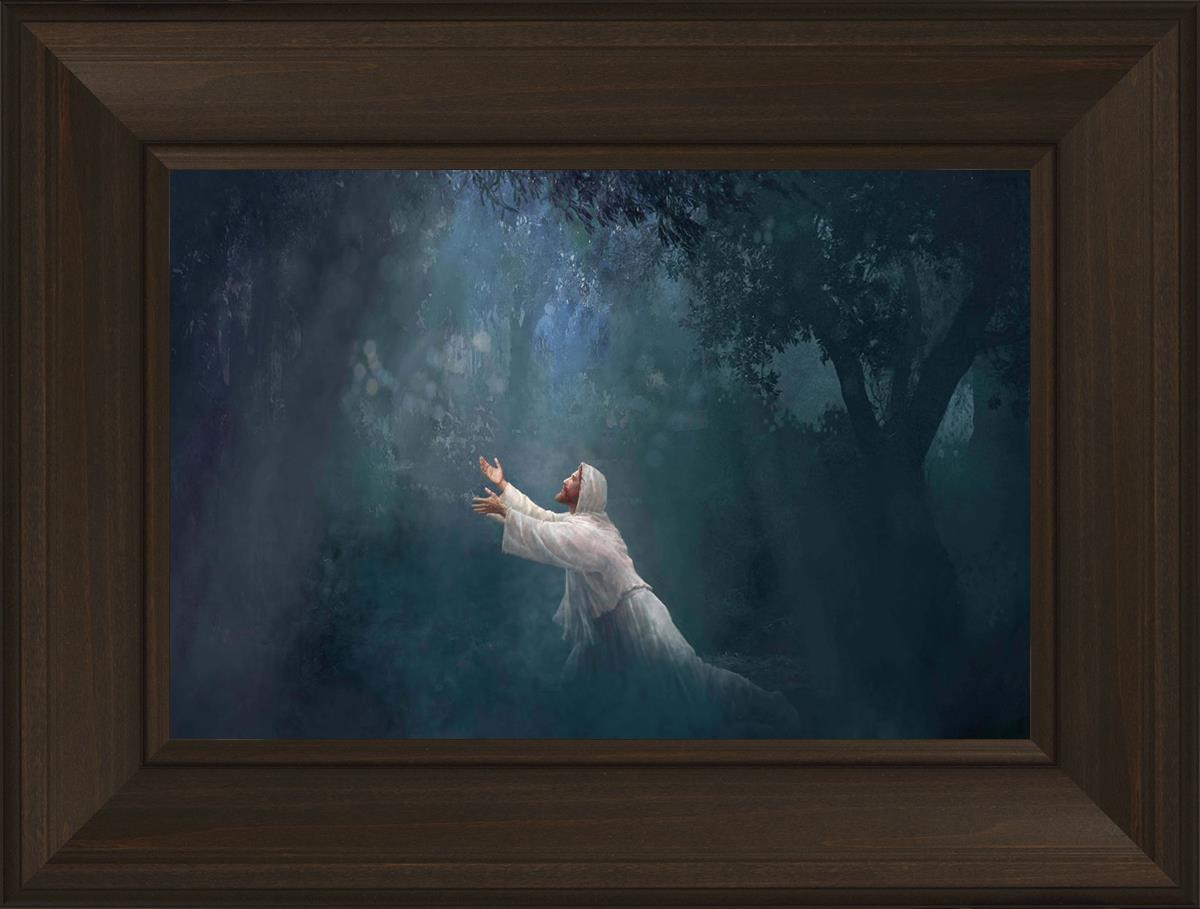 Not My Will But Thine by Yongsung Kim depicts Jesus kneeling in the garden of gethsemane at night with His arms raised to heaven pleading with the Father that if it be possible He let this cup pass by Him. This painting is available in print and canvas.