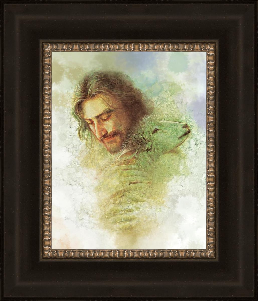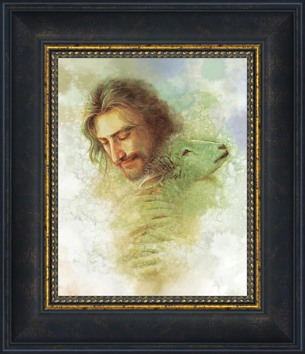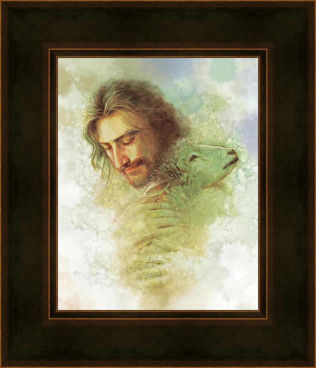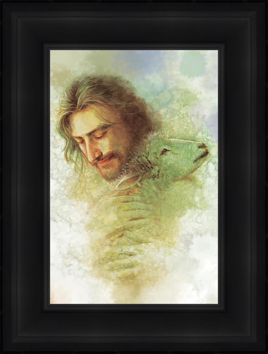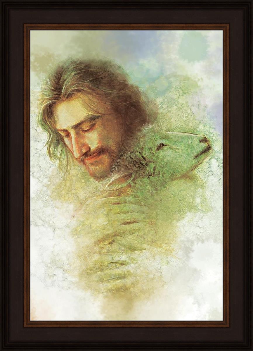 Rejoice by Yongsung Kimdepicts Jesus embracing a lamb. This painting is available in print and canvas.