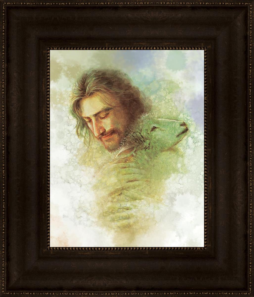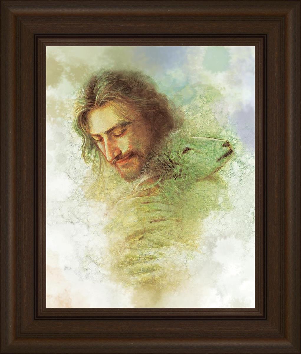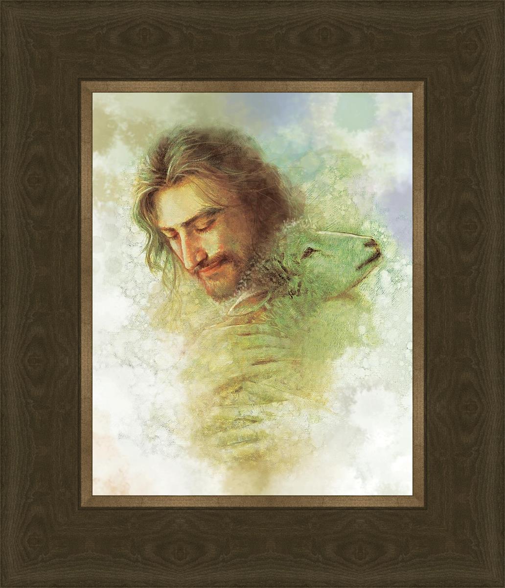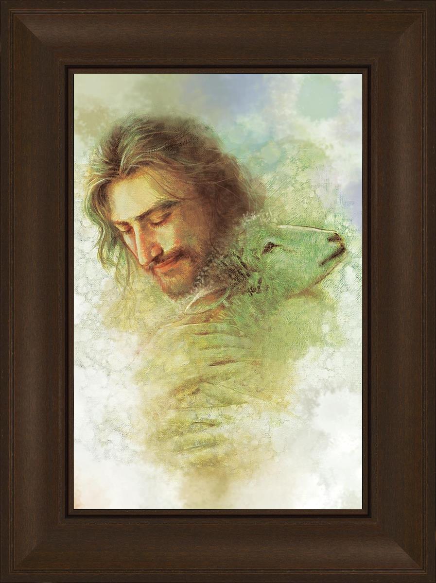 Rejoice by Yongsung Kimdepicts Jesus embracing a lamb. This painting is available in print and canvas.