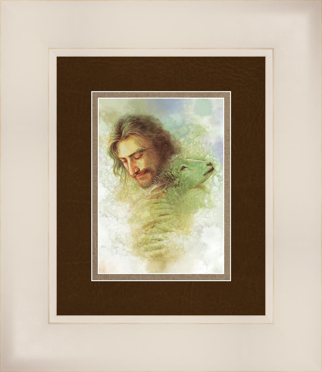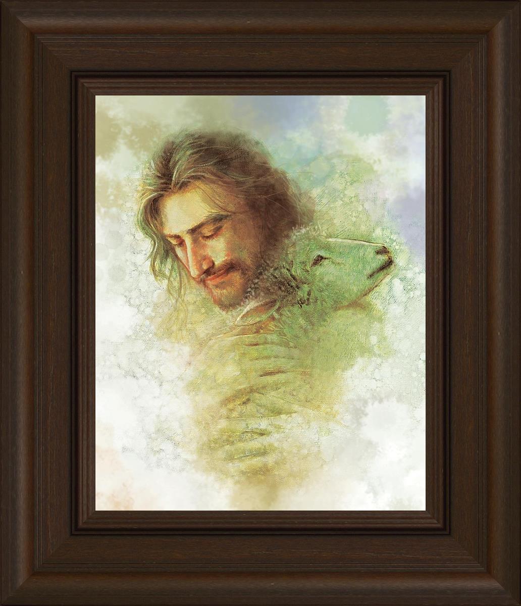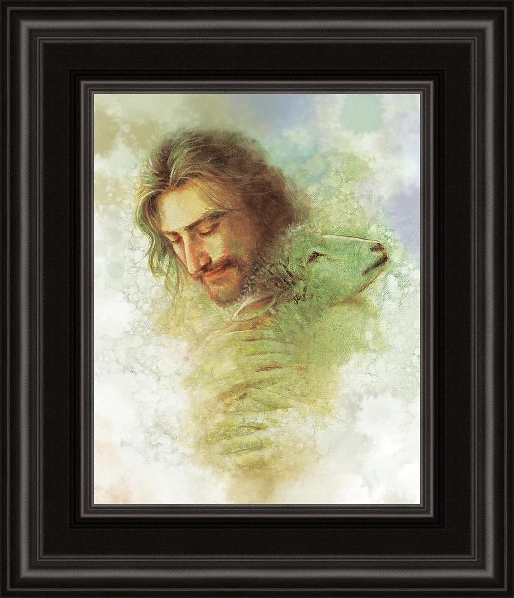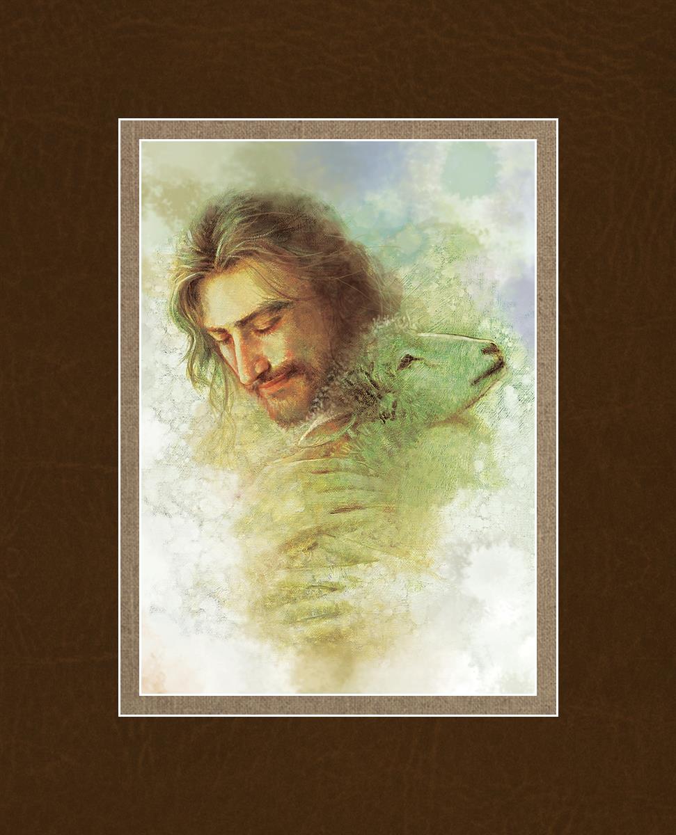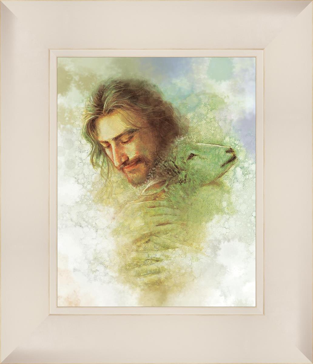 Rejoice by Yongsung Kimdepicts Jesus embracing a lamb. This painting is available in print and canvas.