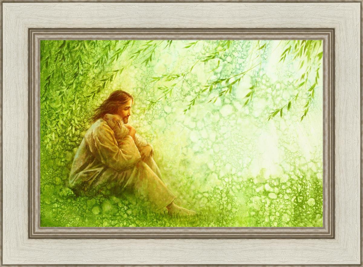 The Good Shepherd is a painting by Yongsung Kim. This painting depicts Jesus Christ beneath a green tree caring for one of His lost sheep.