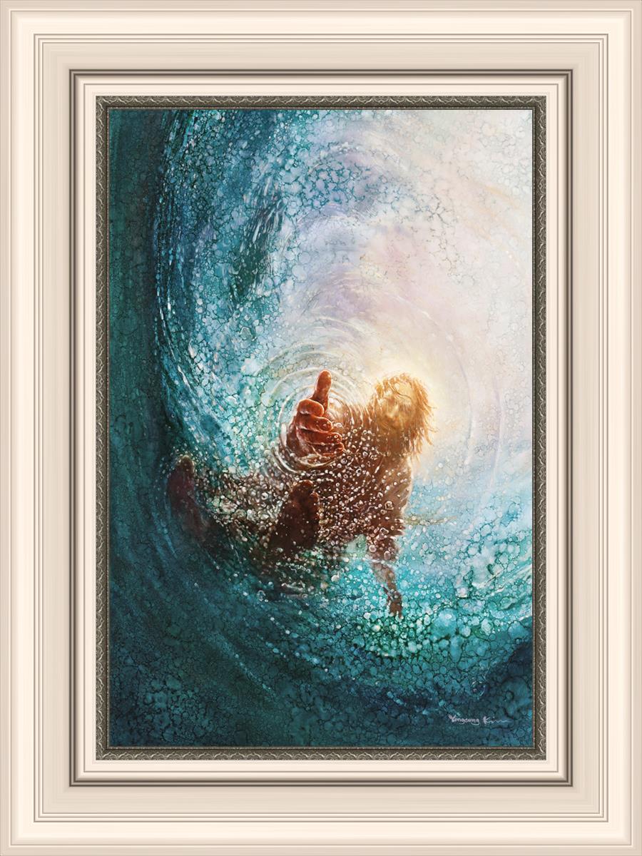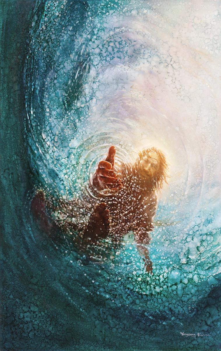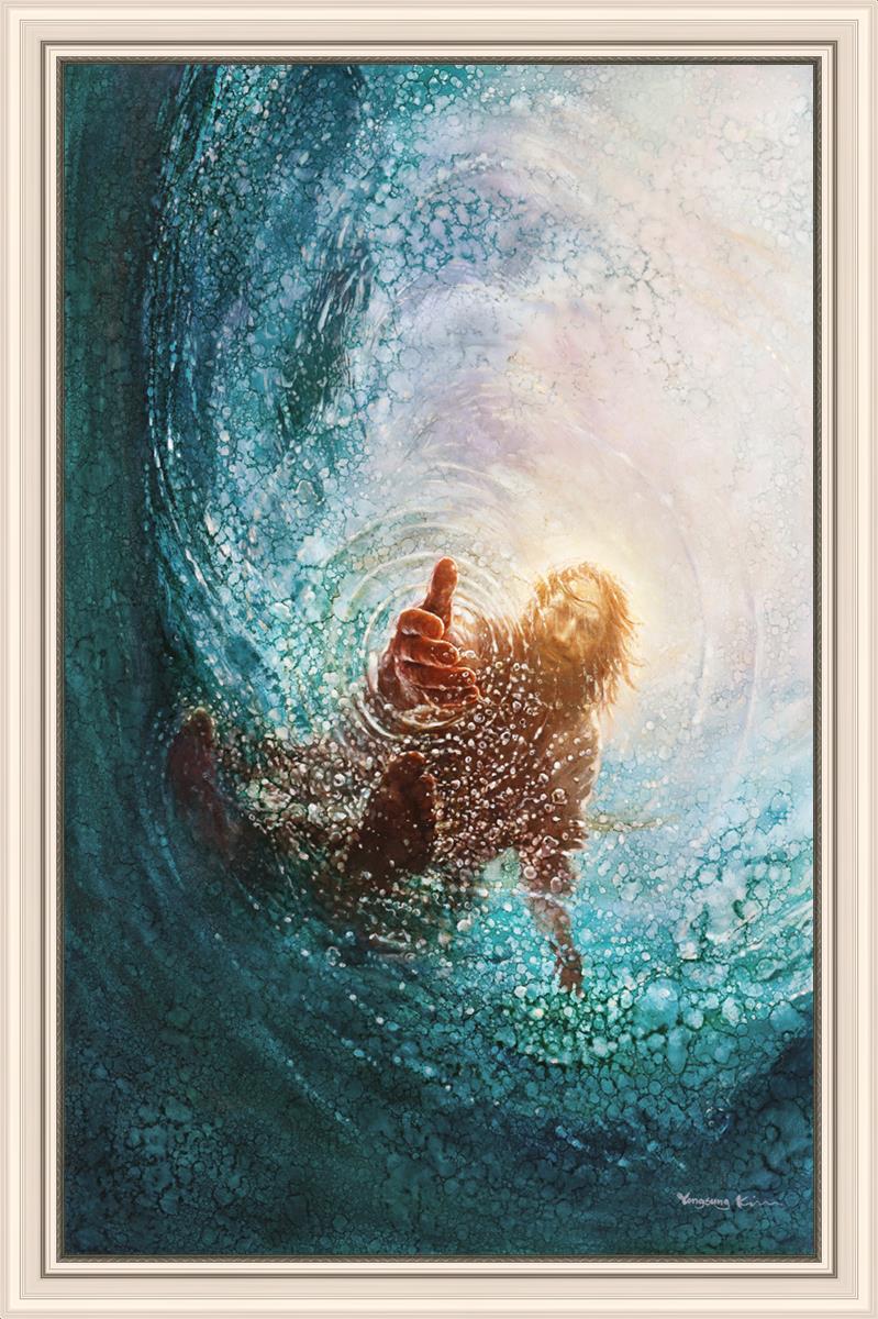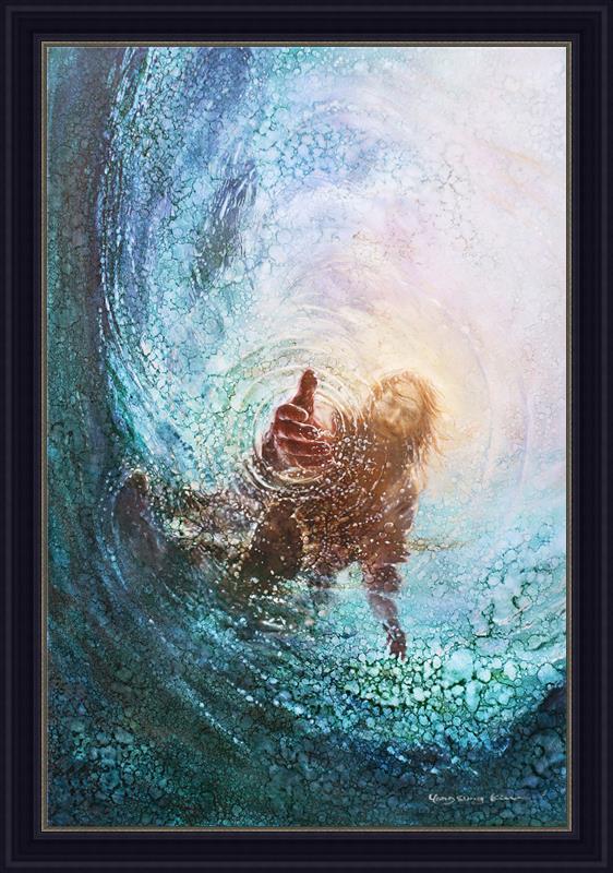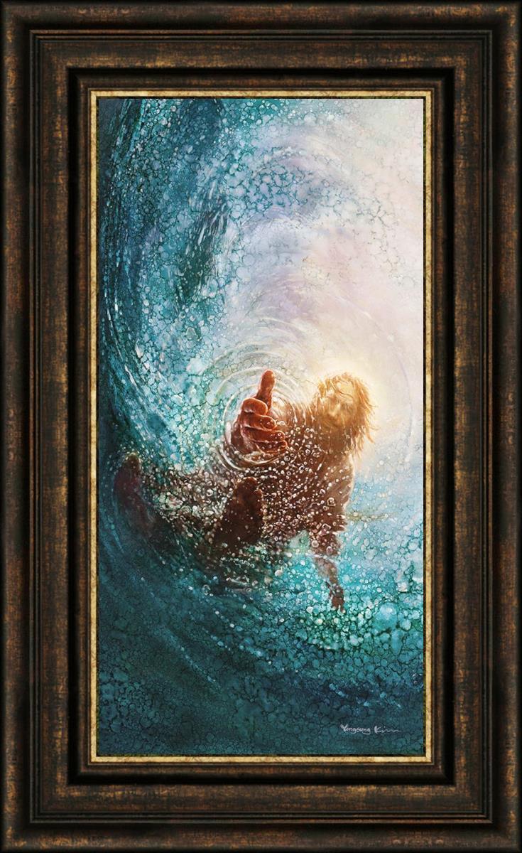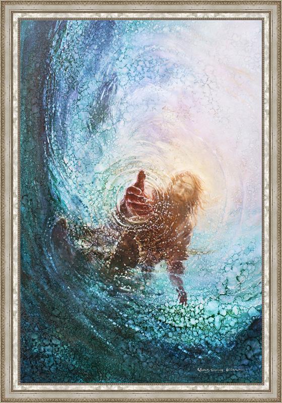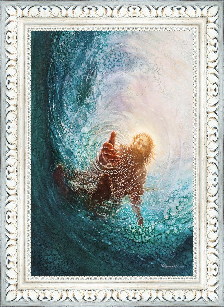 The Hand of God painting by Yongsung Kim shows our Savior Jesus Christ walking on the water. Jesus has His hand reaching into the water to save Simon Peter who is drowning. This painting of Jesus Christ may be the most popular image and picture of Christ anywhere on the internet! The Hand of God painting has captured the hearts of men and women all across the earth. We hope you enjoy this picture of Jesus.