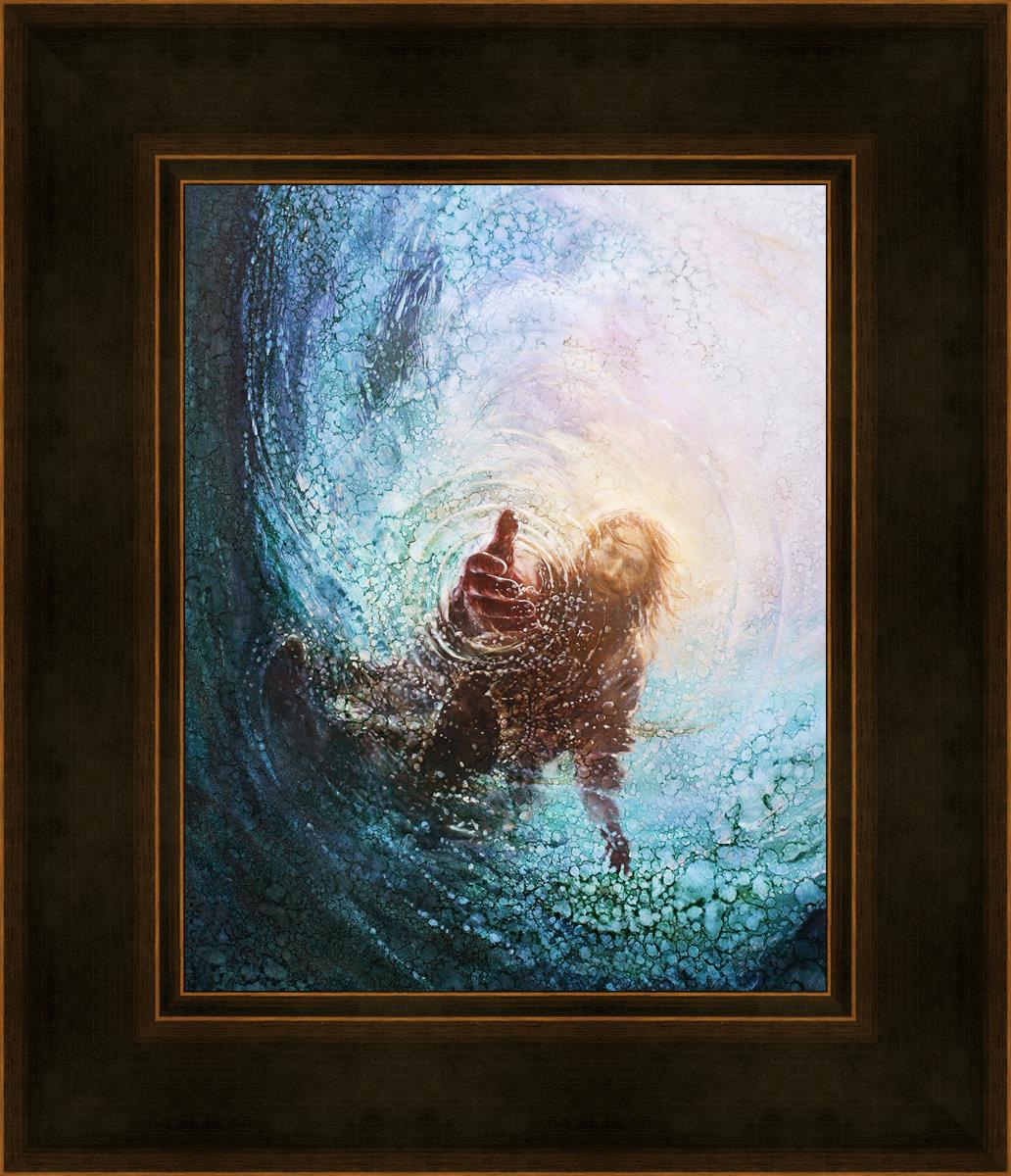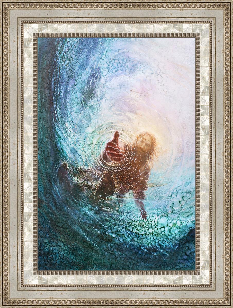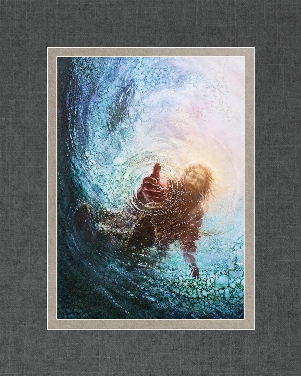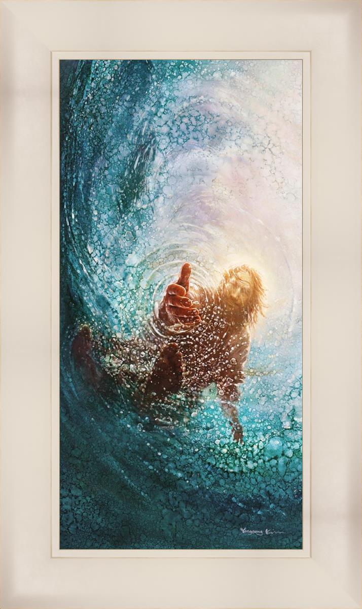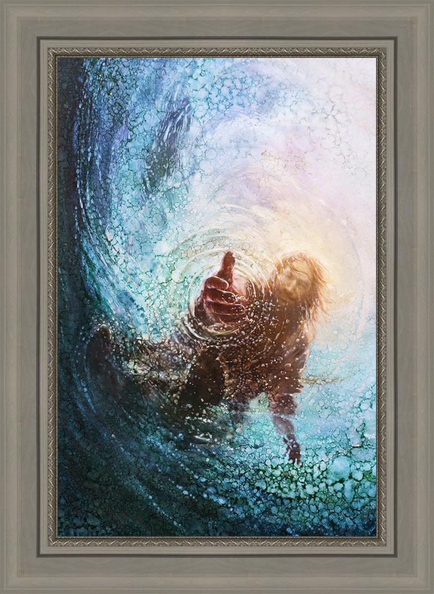 The Hand of God painting by Yongsung Kim shows our Savior Jesus Christ walking on the water. Jesus has His hand reaching into the water to save Simon Peter who is drowning. This painting of Jesus Christ may be the most popular image and picture of Christ anywhere on the internet! The Hand of God painting has captured the hearts of men and women all across the earth. We hope you enjoy this picture of Jesus.