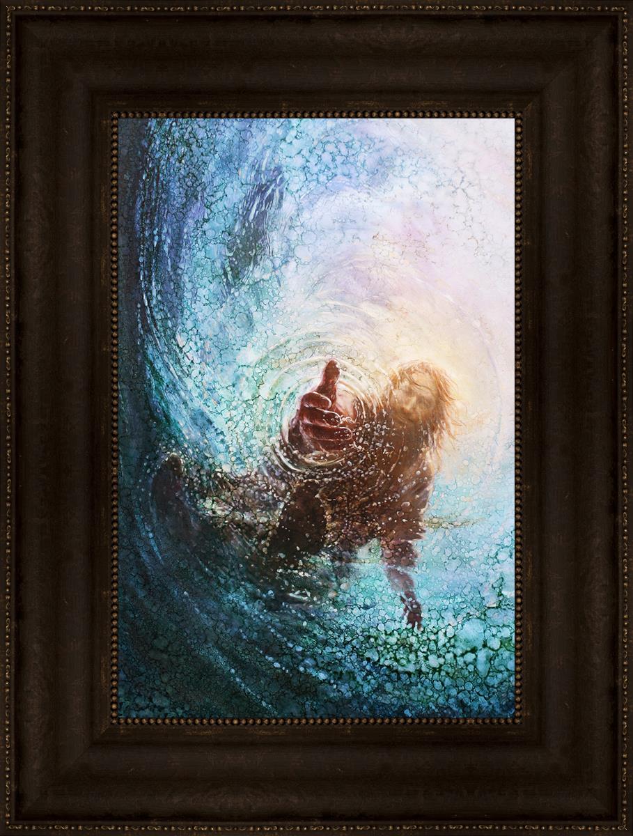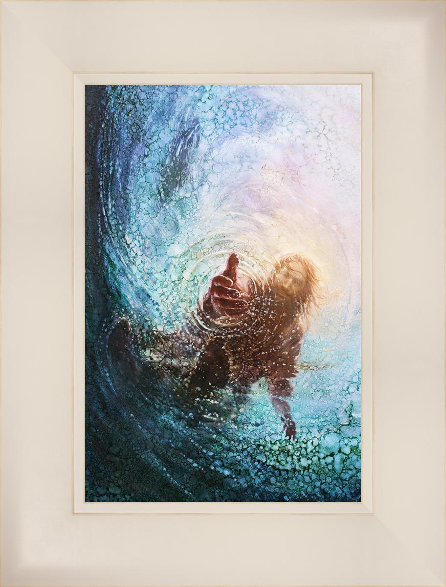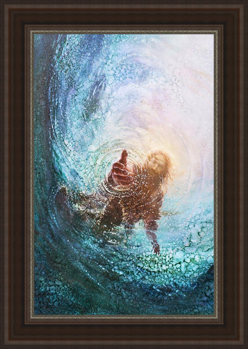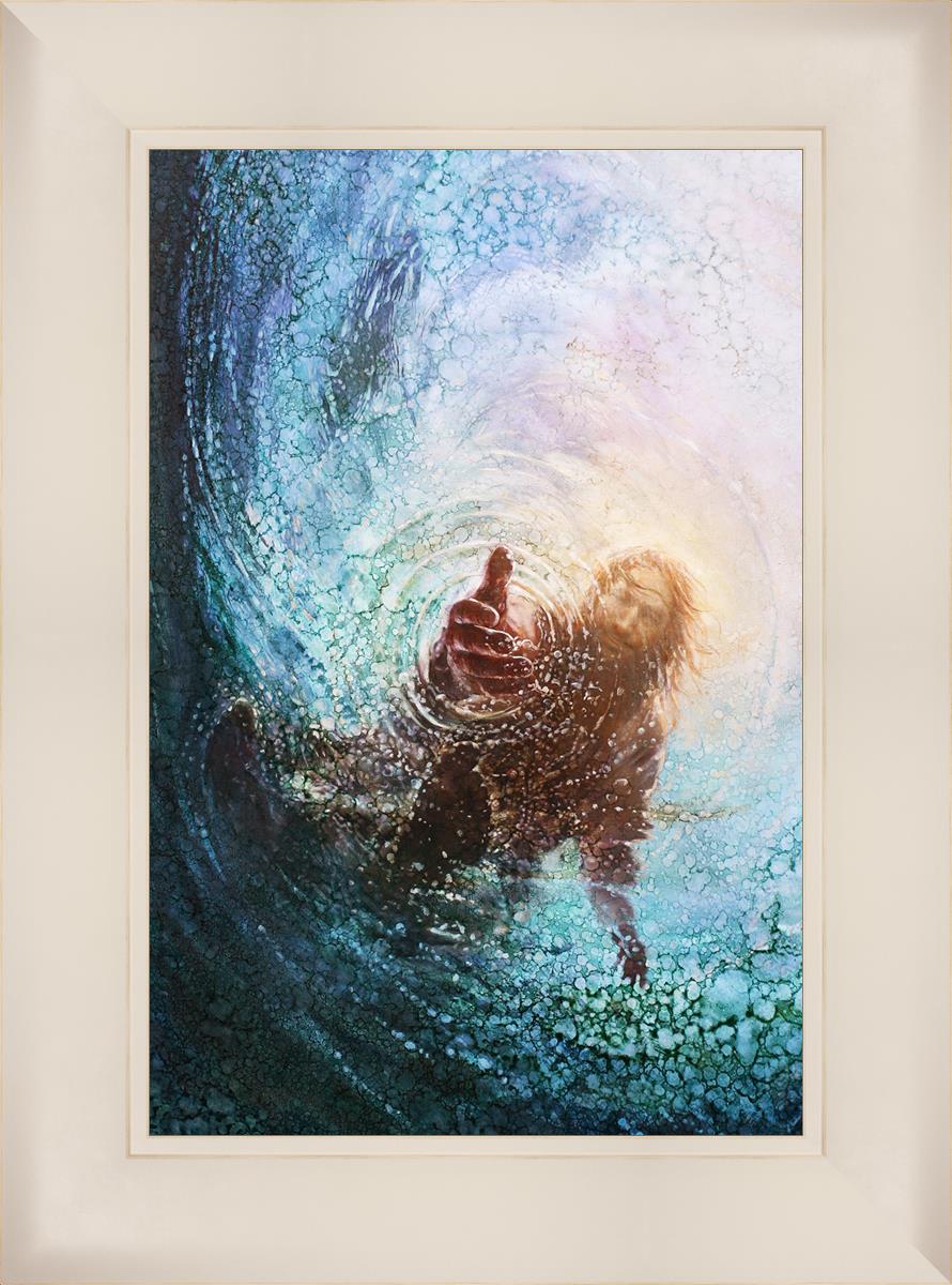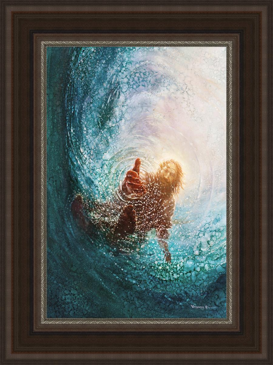 The Hand of God painting by Yongsung Kim shows our Savior Jesus Christ walking on the water. Jesus has His hand reaching into the water to save Simon Peter who is drowning. This painting of Jesus Christ may be the most popular image and picture of Christ anywhere on the internet! The Hand of God painting has captured the hearts of men and women all across the earth. We hope you enjoy this picture of Jesus.