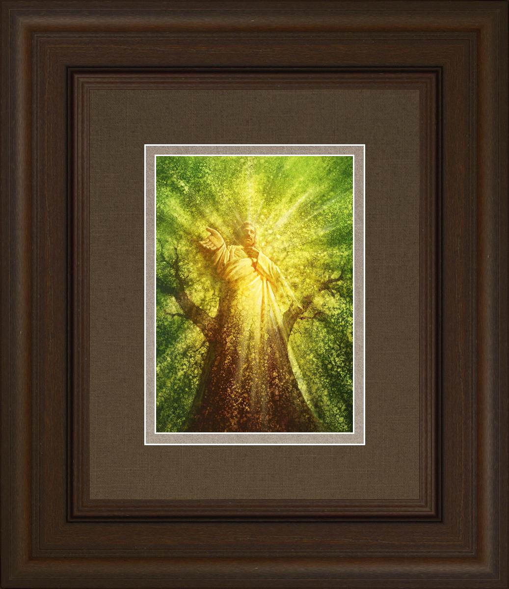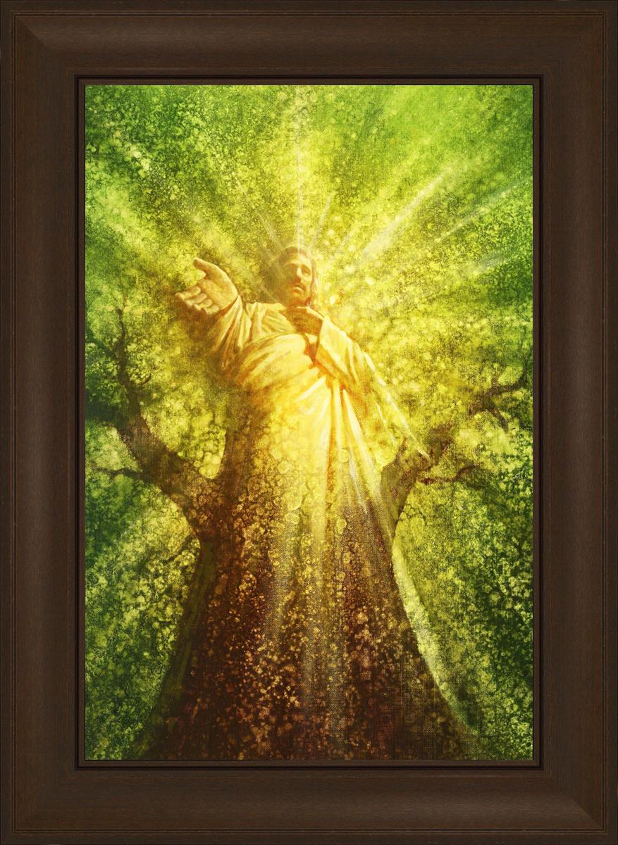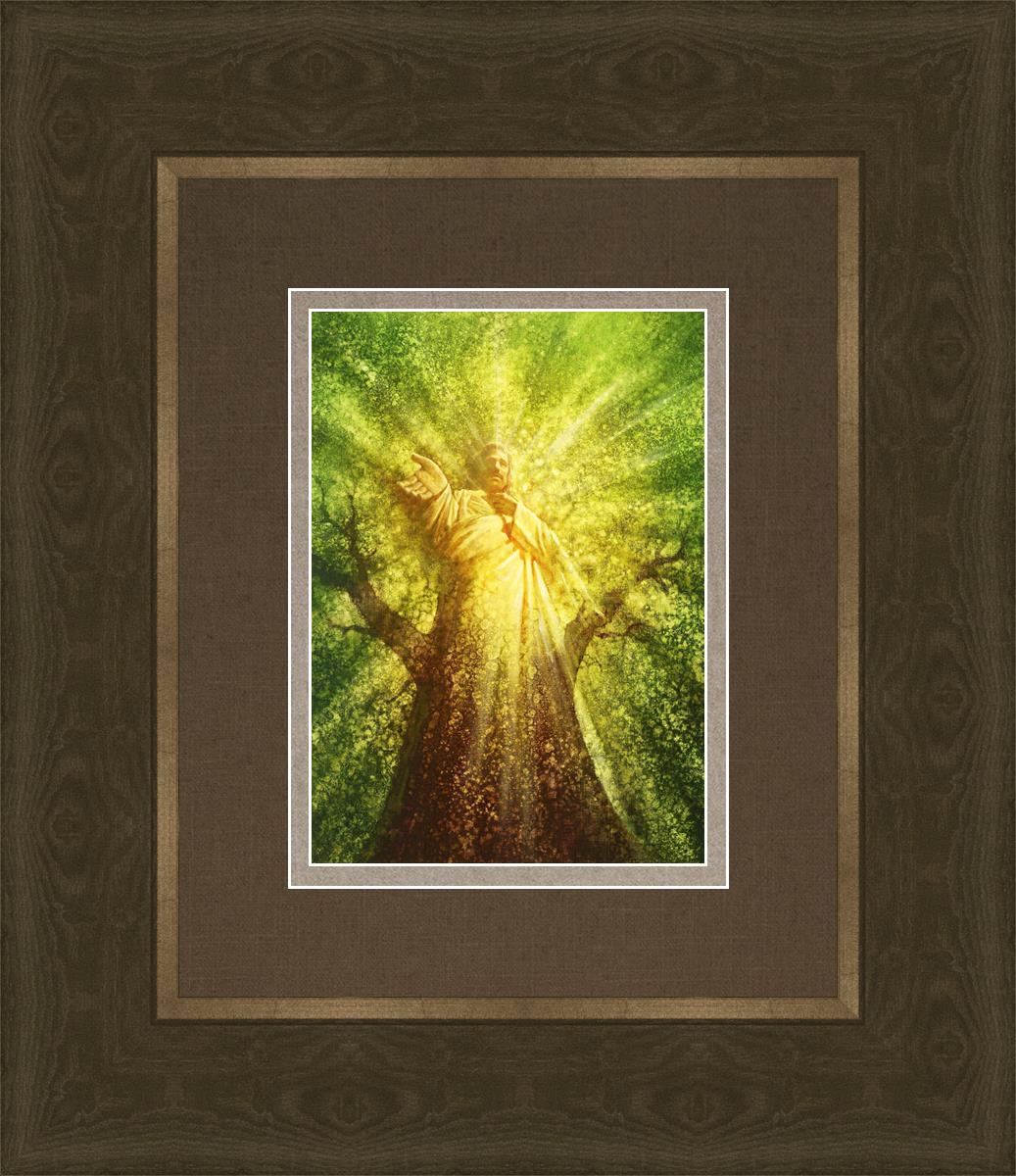 Tree of Life by Yongsung Kim depicts Jesus layered over a large tree representing him as the tree of life with one of His hands reaching down to us. This painting is available in print and canvas.